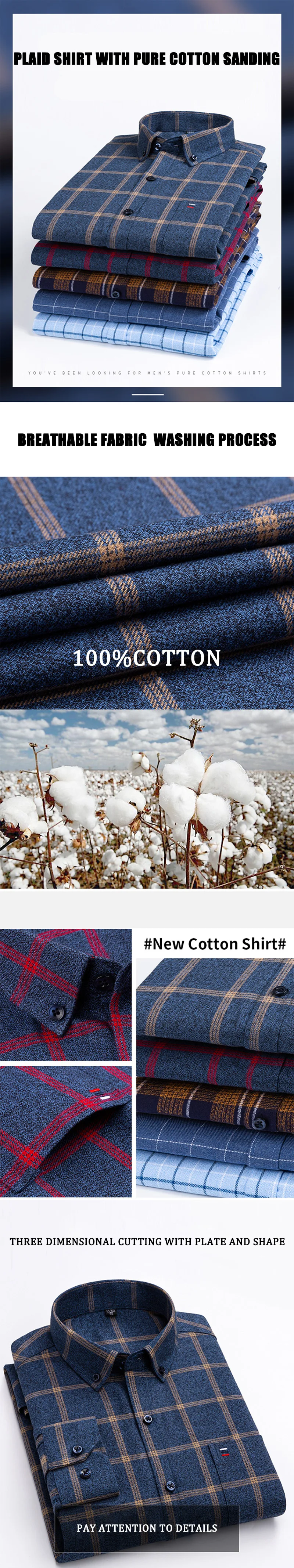 Рубашка Aoliwen Мужская Фланелевая, 100% хлопок, впитывающая пот, Повседневная приталенная, мягкая в клетку, с длинным рукавом, весна