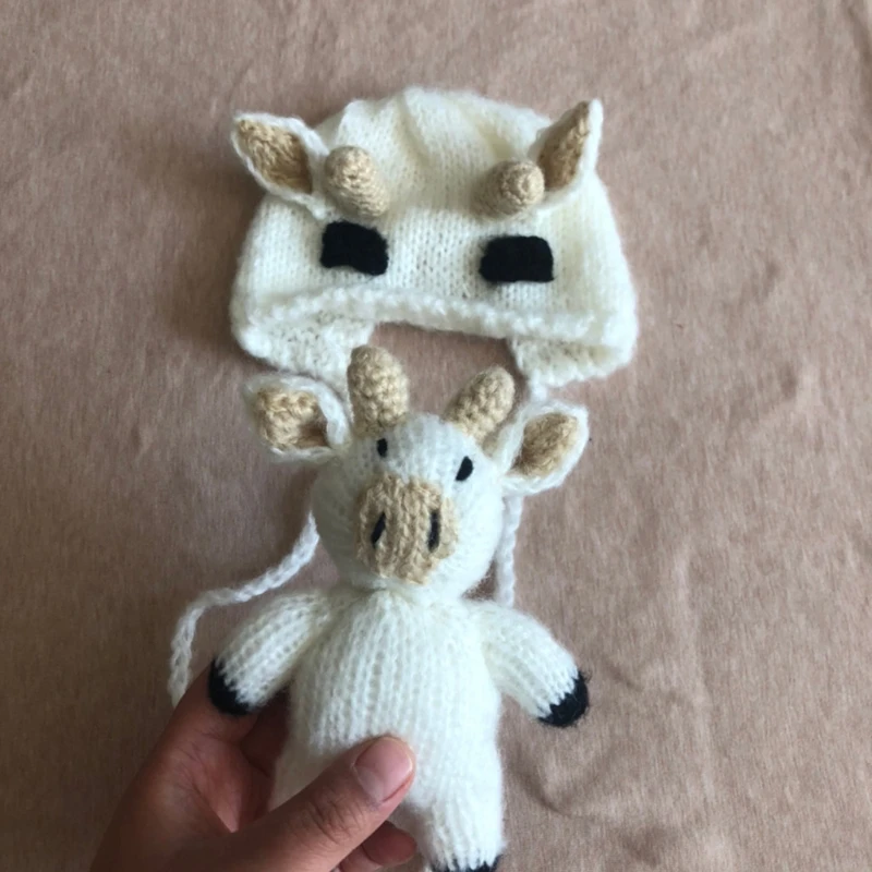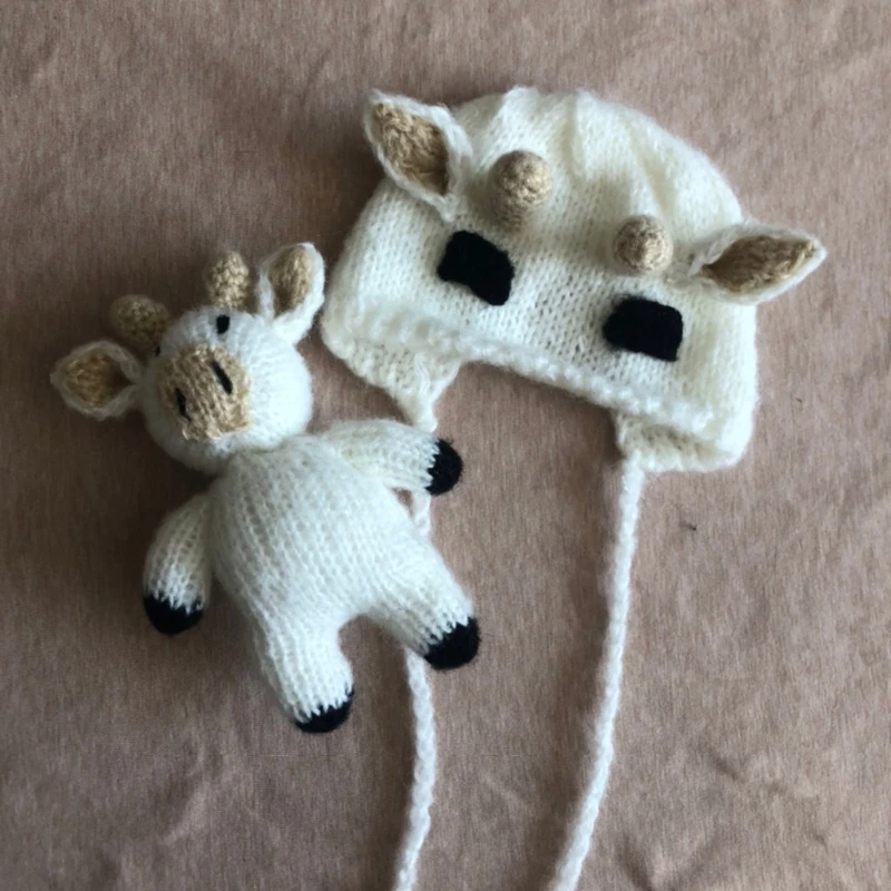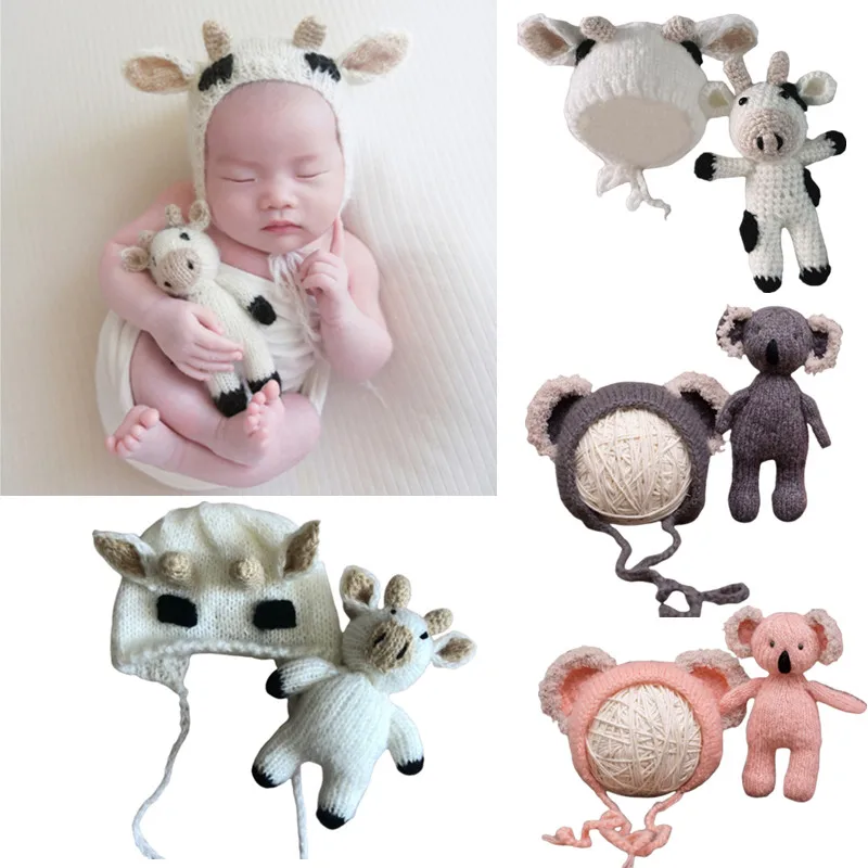 1 комплект фон для фотографирования новорожденных с изображением Опора Костюм вязанная крючком Детская шапка с kawaii мягкие корова каталка с ручкой для фото съемки одежда