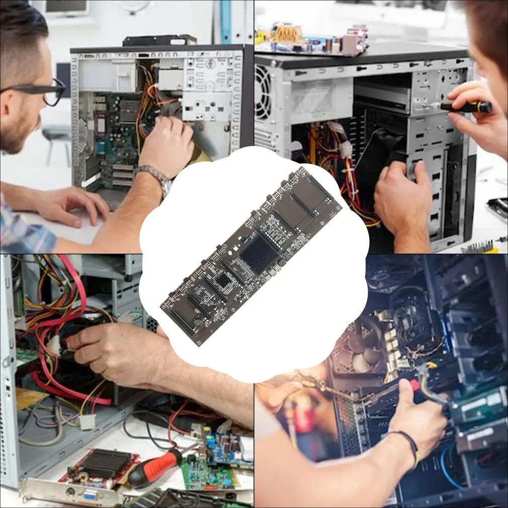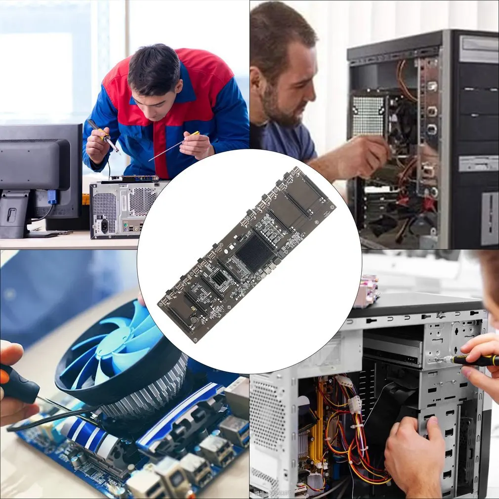 Эта материнская плата BTC совместима с обычными картами для майнинга, такими как: серии RX, серии GTX10, серии gtx20, серии gtx30 и т. д. И материнская плата использует разъем питания 8*6pin PCIe 12v.