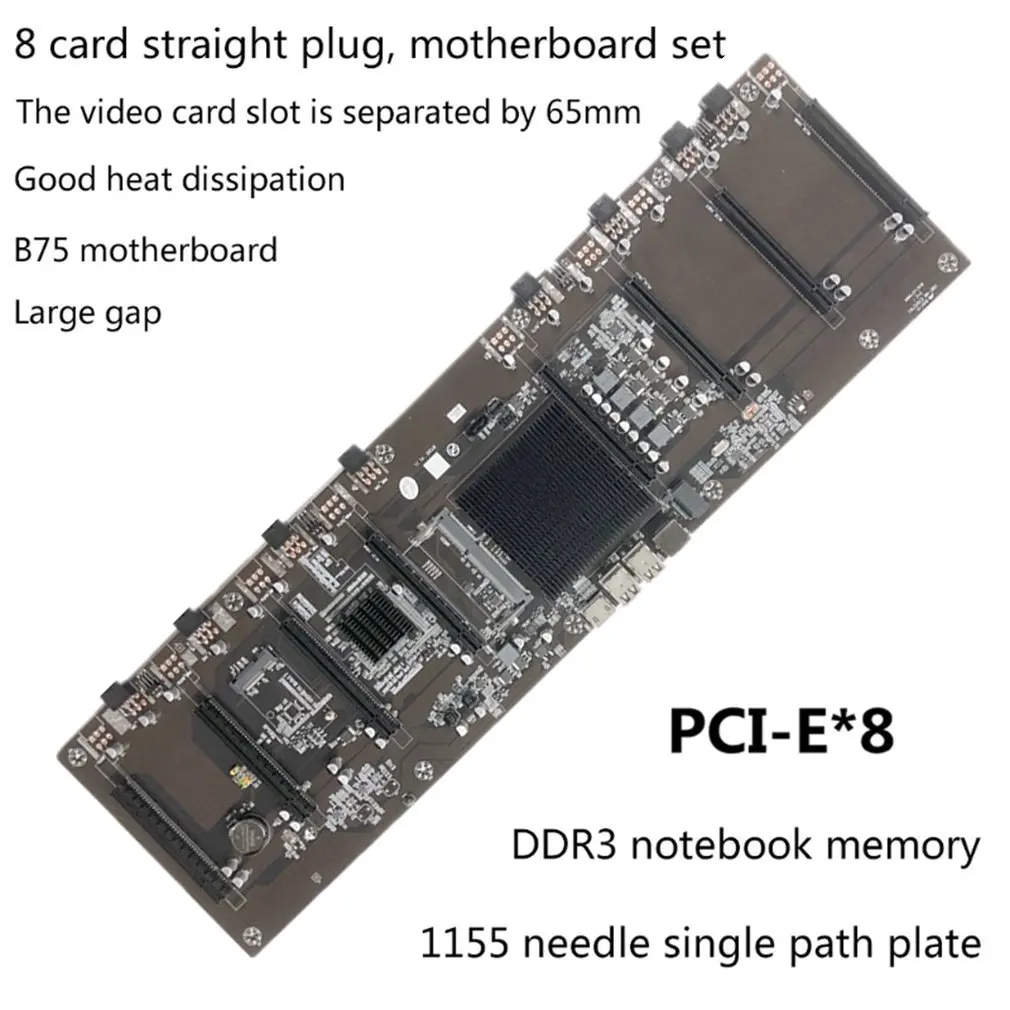 Чип HM65, 8 слотов для карт, полностью твердотельный конденсатор BTC, мультиграфическая карта, материнская плата для майнинга с поддержкой RX,GTX10,gtx20,gtx30 серии