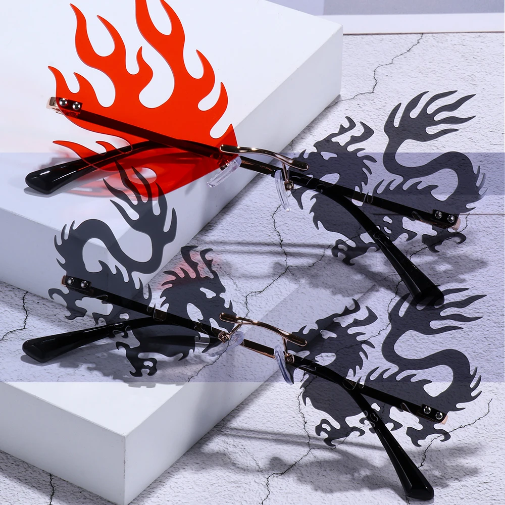 Горячая новинка дракон феникс без оправы Солнцезащитные очки для мужчин и женщин UV400 Модные трендовые женские вечерние цветные солнцезащитные очки