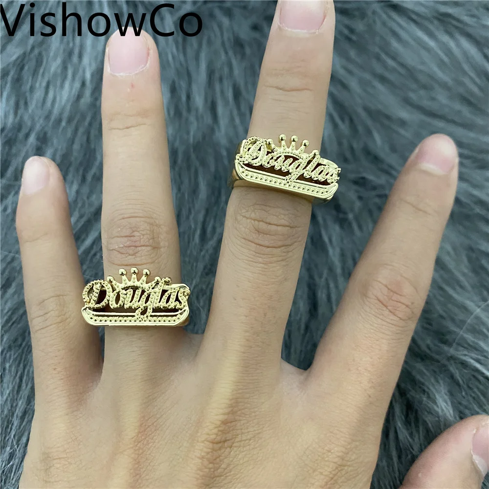 Кольцо с короной VishowCo мужскоеженское из нержавеющей стали, кольцо с именем и именем под заказ, бижутерия на заказ, хороший подарок для мужчин и женщин