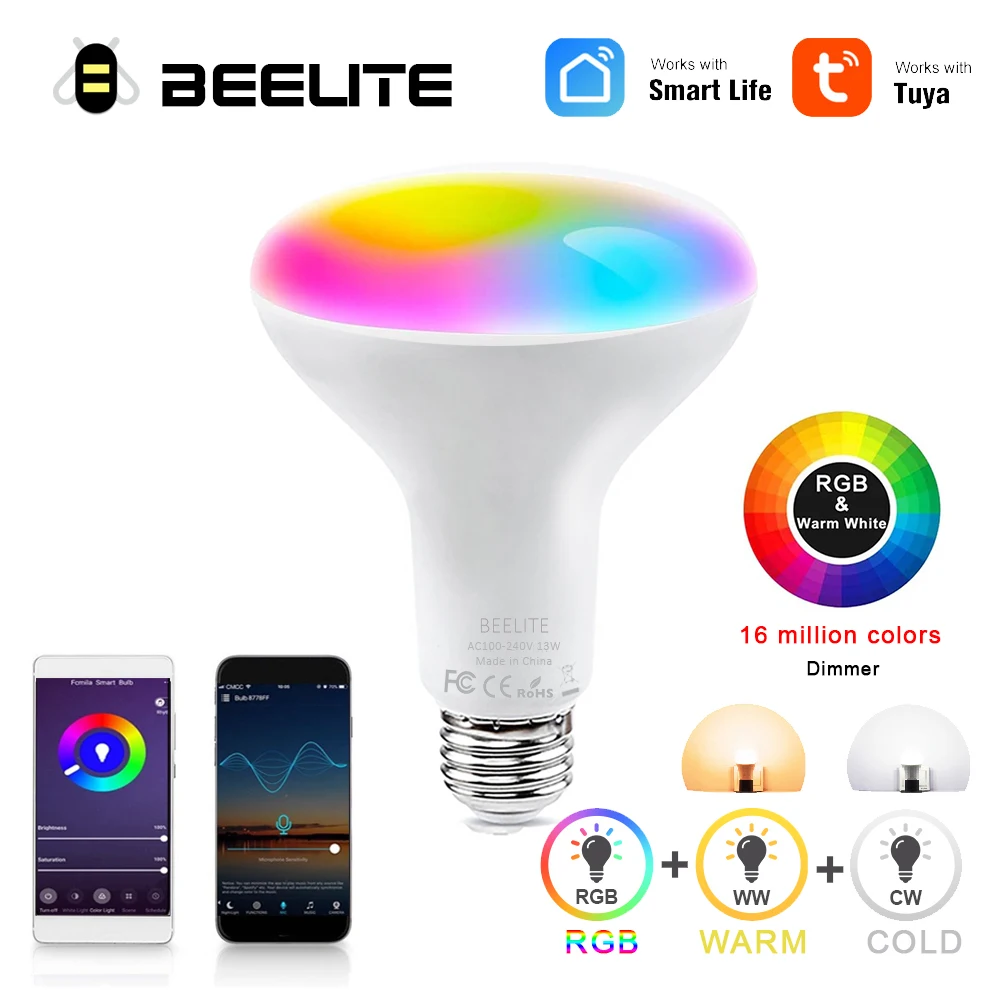 Умная лампа Beelite 110 В 220 В с Wi-Fi, 13 Вт, E27, RGB, светодиодная приглушаемая Волшебная цветная лампа с дистанционным управлением, голосовым управлением, Alexa и Google Assistant