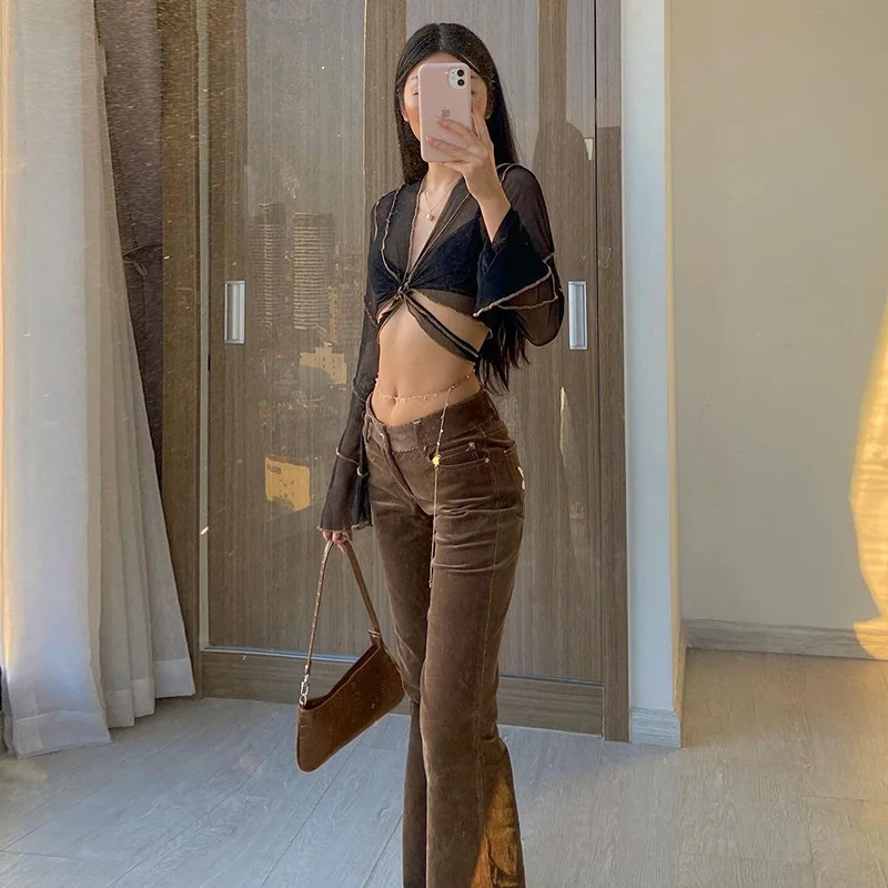 Эстетика в стиле бандаж с черной петлей-сетчатые кроп-топы 2021 Лет...