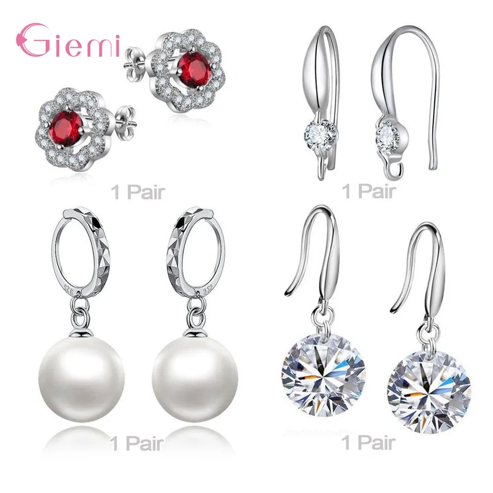 Хит продаж, 925 пробы серебряные серьги, разные стили, 4 пары, разн...