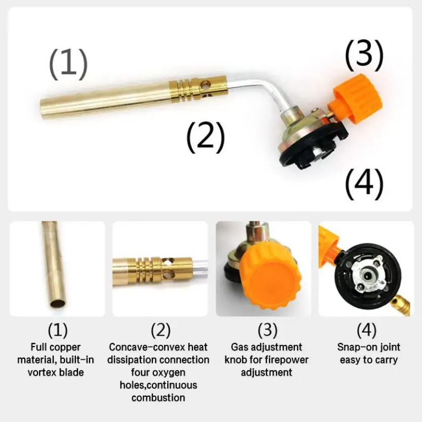 Материал: медь + алюминиевый сплав Особенности: идеально подходит для приготовления пищи, сварки, пайки, сантехники и т. д. Применимый Бензобак: Бензобак с бутаном (не входит в комплект) Посылка входит: 1 шт * огнемет Примечание: 1. Из-за ручного измерения и различных методов измерения допускается погрешность в 1-3 см. 2. Из-за разницы между различными мониторами изображение может не отражать реальный цвет продукта. 3. Изделие представляет собой одну сварную трубу и не включает газовый баллон.
