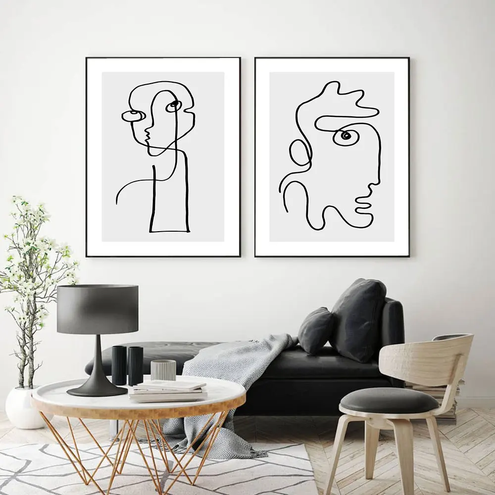 Абстрактный минималистичный плакат, холст, Скандинавская черная лин...