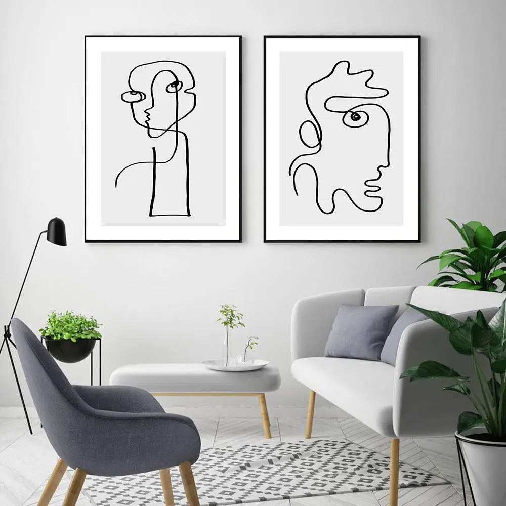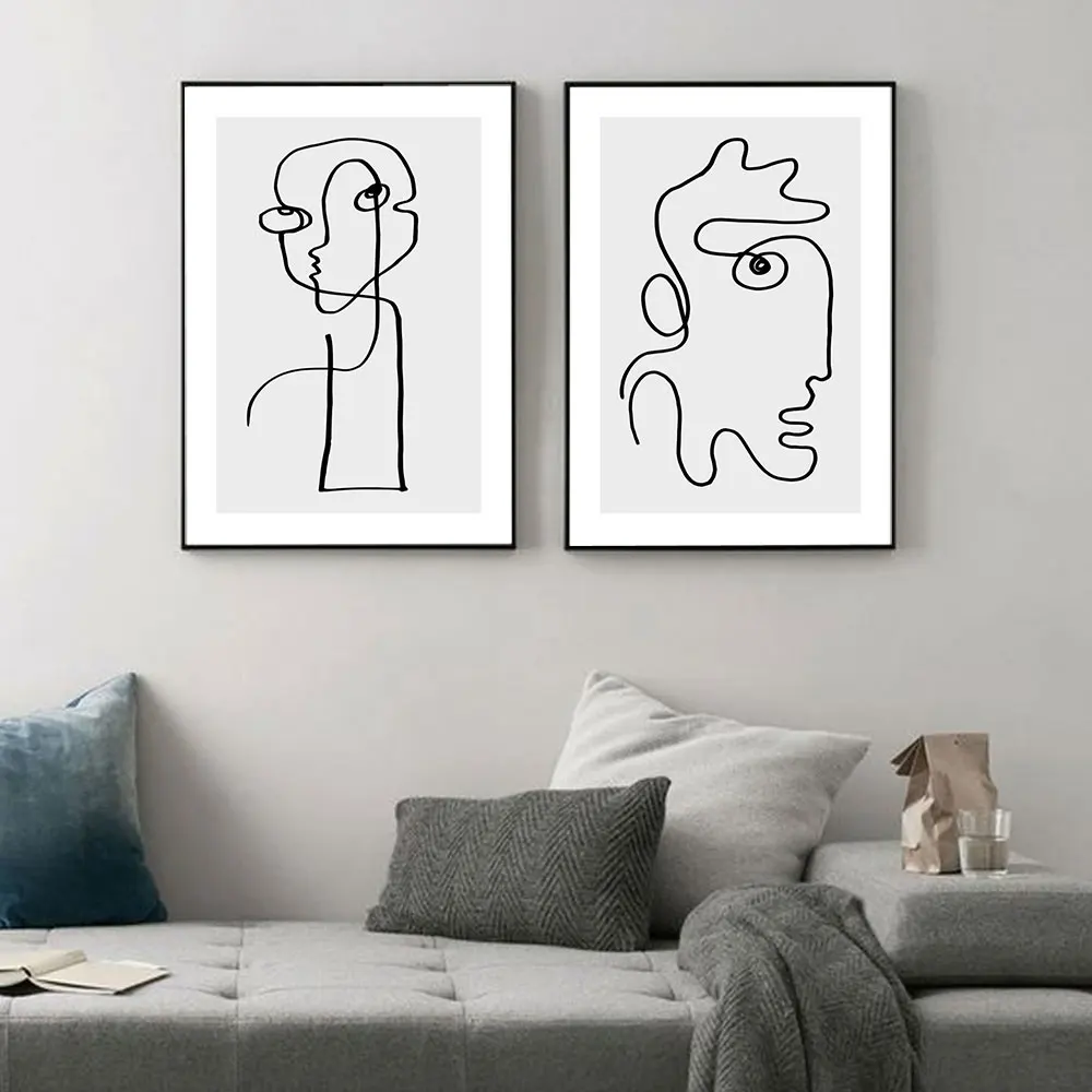 Постер с абстрактным лицом, яркая однолинейная картина в скандинавс...