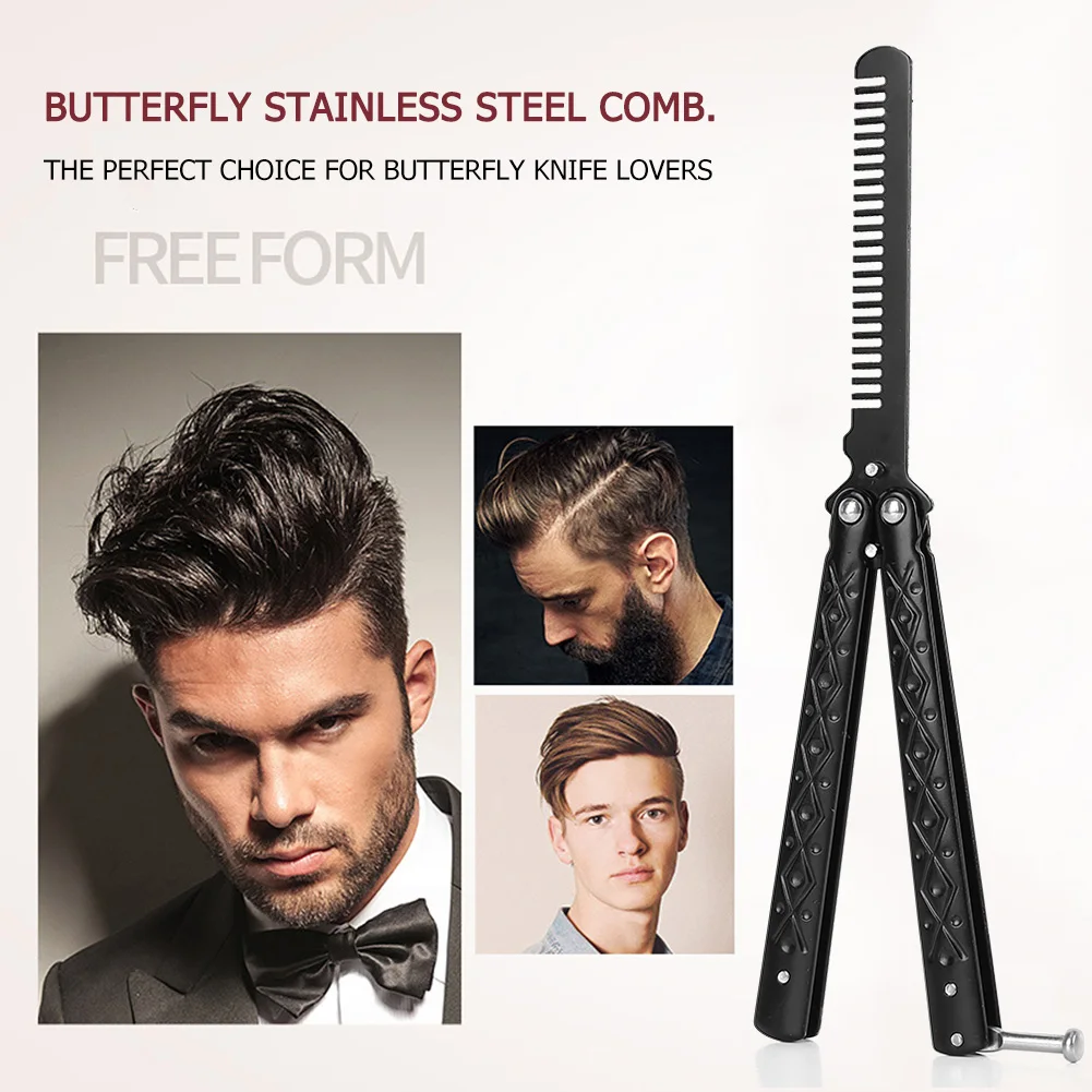 Походный металлический складной балисонг, тренировочный гребень, нож-бабочка, безопасный тренировочный аксессуар, расческа гребень с бабочкой, щетки для бороды