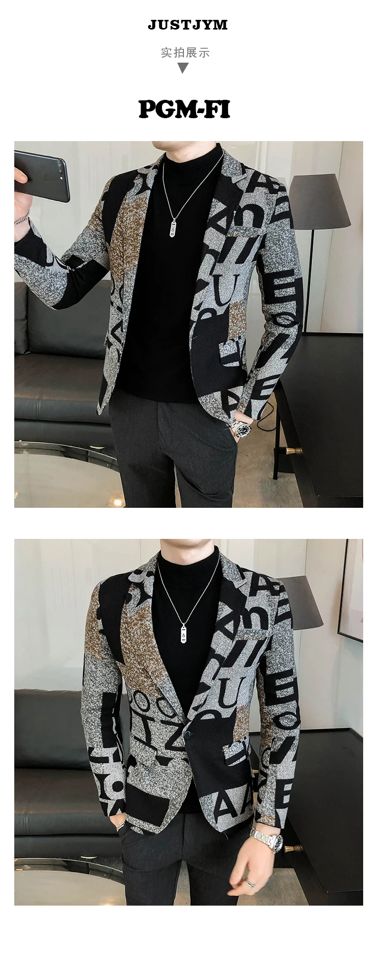2021 шерстяной мужской блейзер с буквенным принтом, зимний мужской блейзер, повседневный костюм, приталенный Блейзер для вечеринки, клуба, свадьбы, S-5XL Серый + Азиатский XL-европейский размер M... Качество хорошее, но для меня не подходит