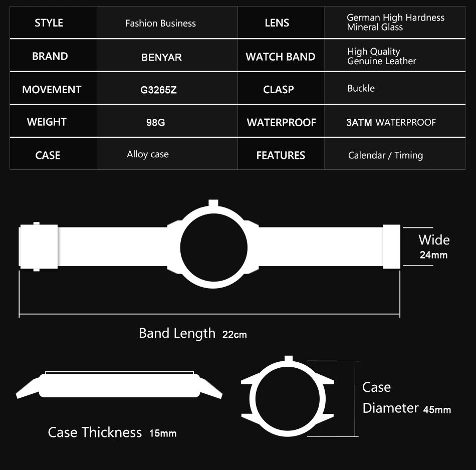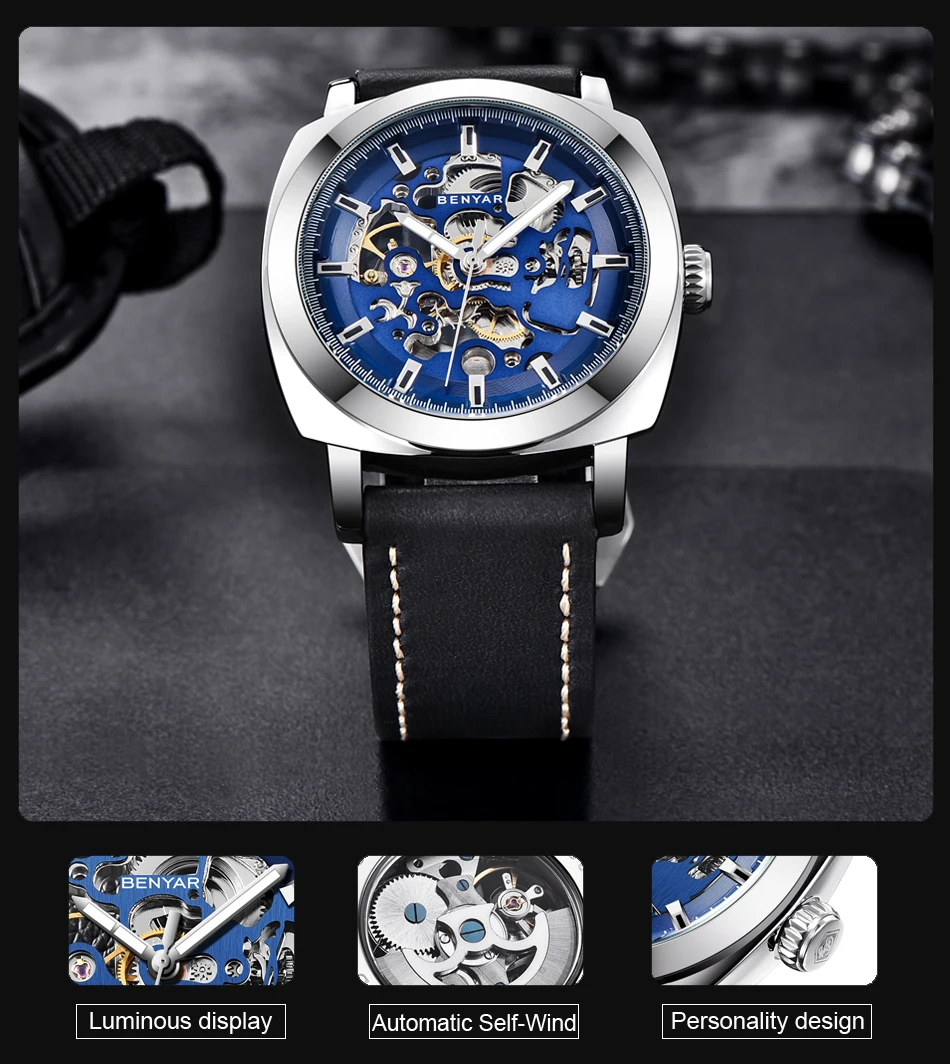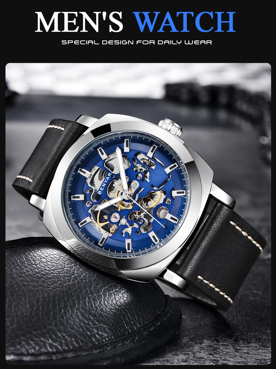 Комплект мужских часов BENYAR, автоматические механические водонепр...