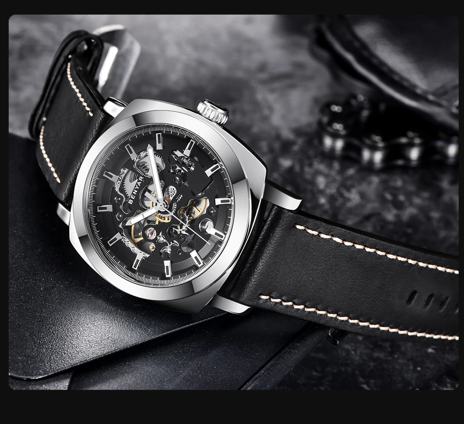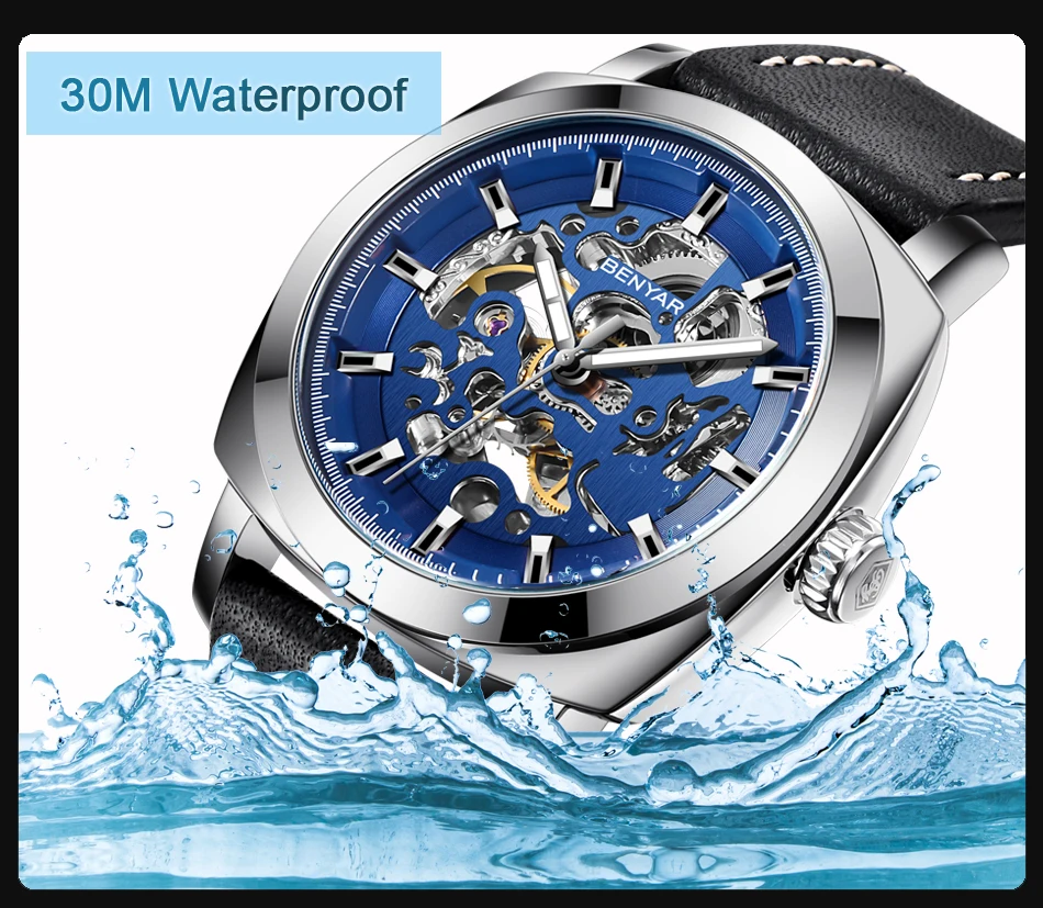 Мужские механические часы BENYAR, водонепроницаемые, с автоподзавод...