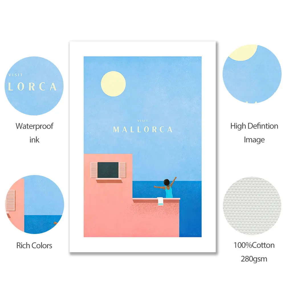 Минималистичный постер для путешествий, Санторини, Греция, искусств...