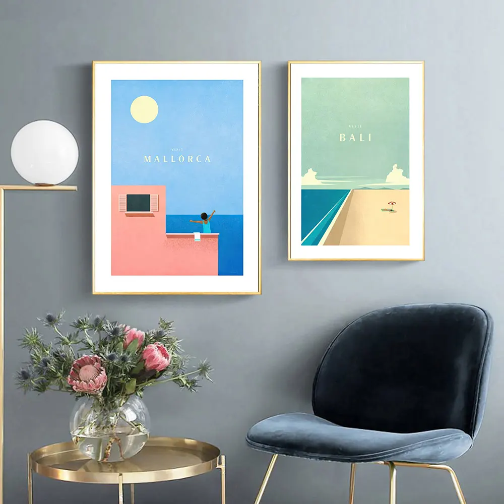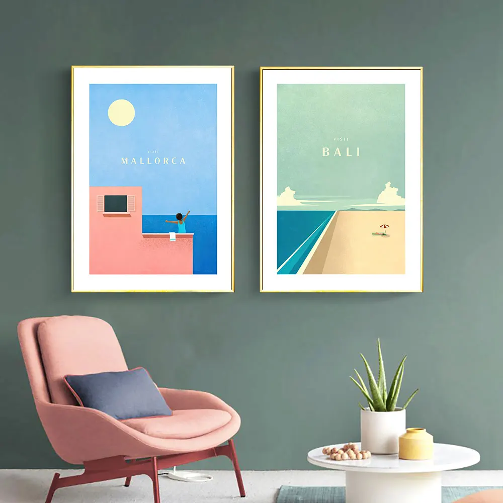 Скандинавский плакат минималистичный Пляжный Пейзаж холст для посещ...