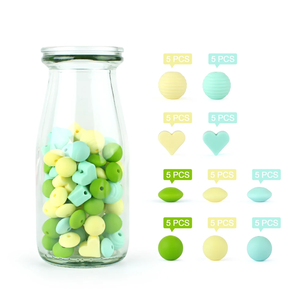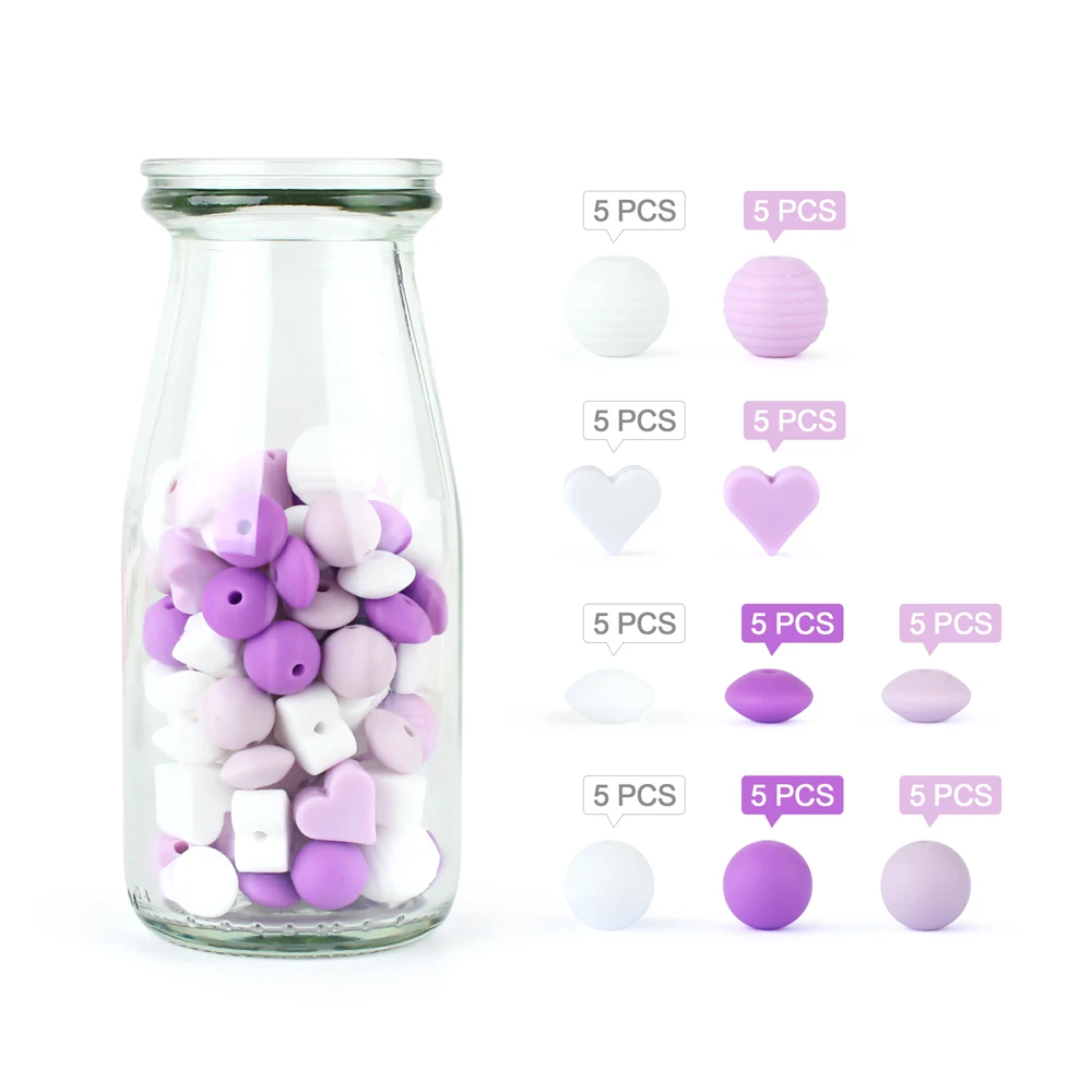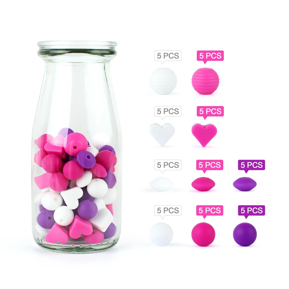 Материал: Одобренный FDA 100% пищевой силикон Функция: Силиконовые Прорезыватели для малышей, вы можете создать красивые ожерелья для прорезывания зубов, сделать браслеты для кормления, соски, детские погремушки Различные формы и цвета могут сделать свои собственные ювелирные изделия. Количество: 50 шт.
