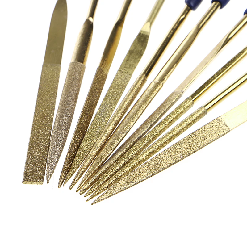 Новинка; 10 шт. Титан алмазная игла для покрытия на плоской подошве набор файлов Металлообработка ремесленных инструментов Титан покрытием Diamond Ассорти файлы