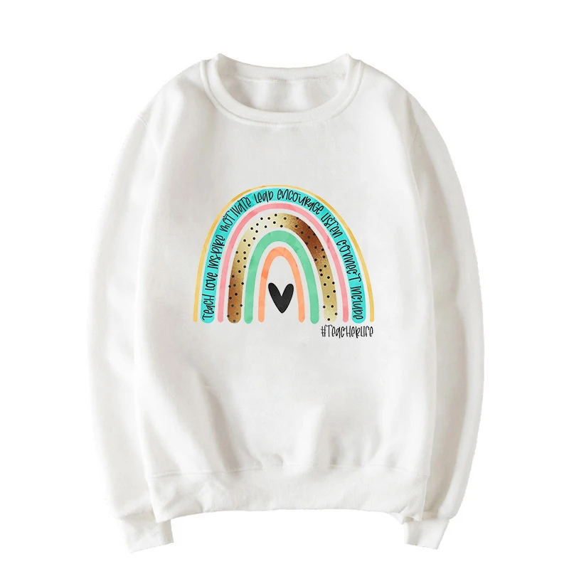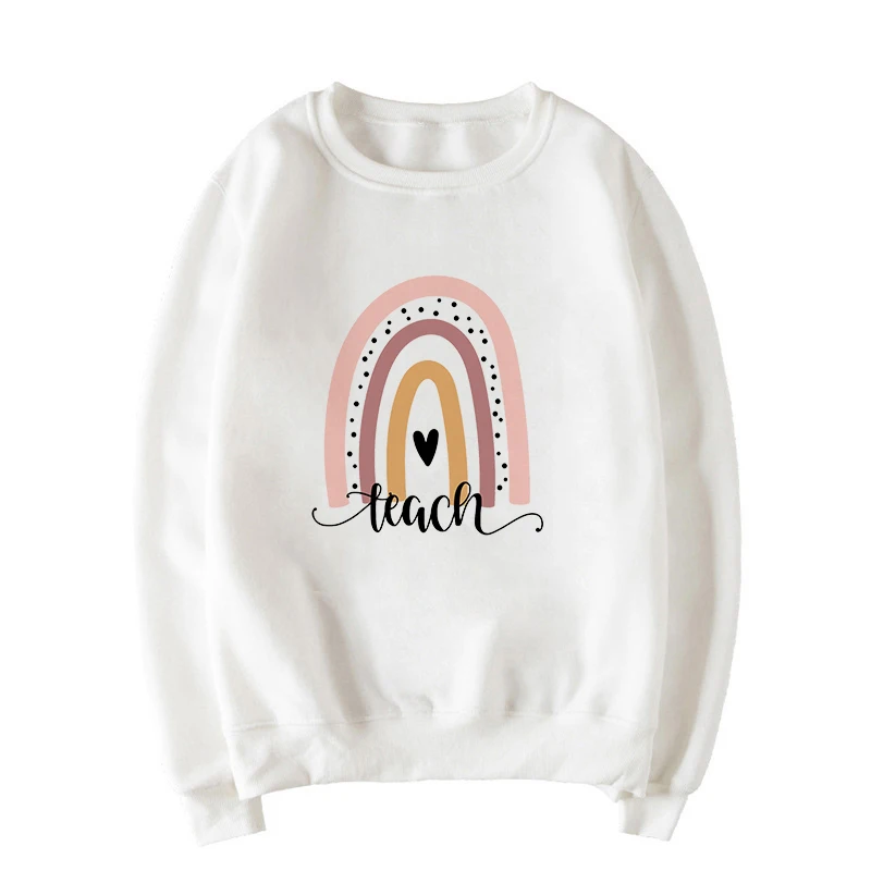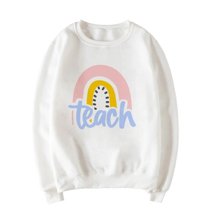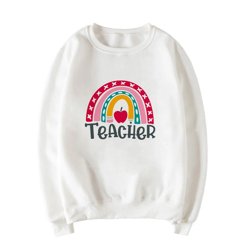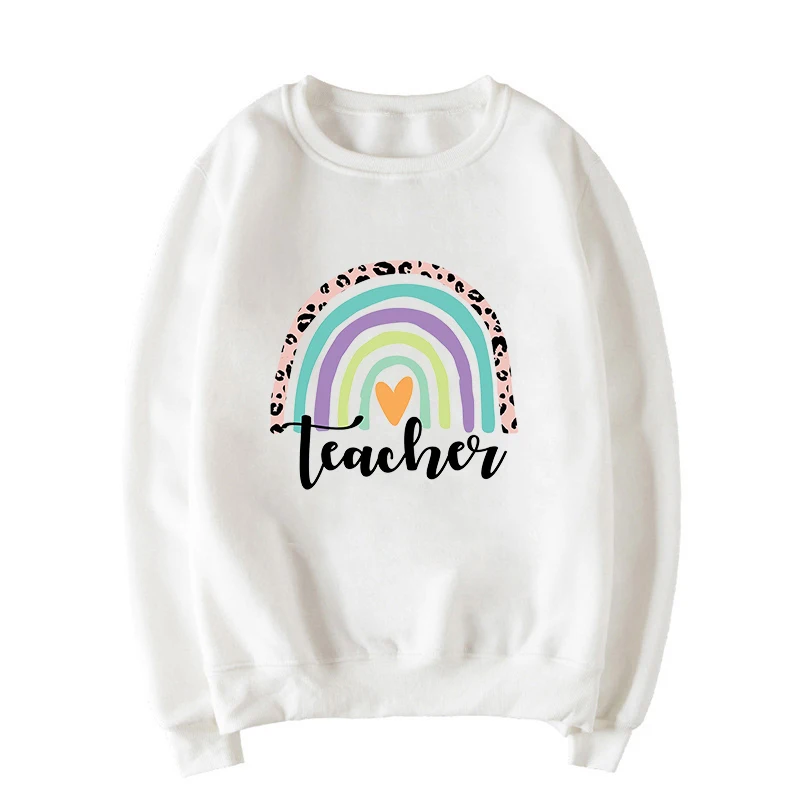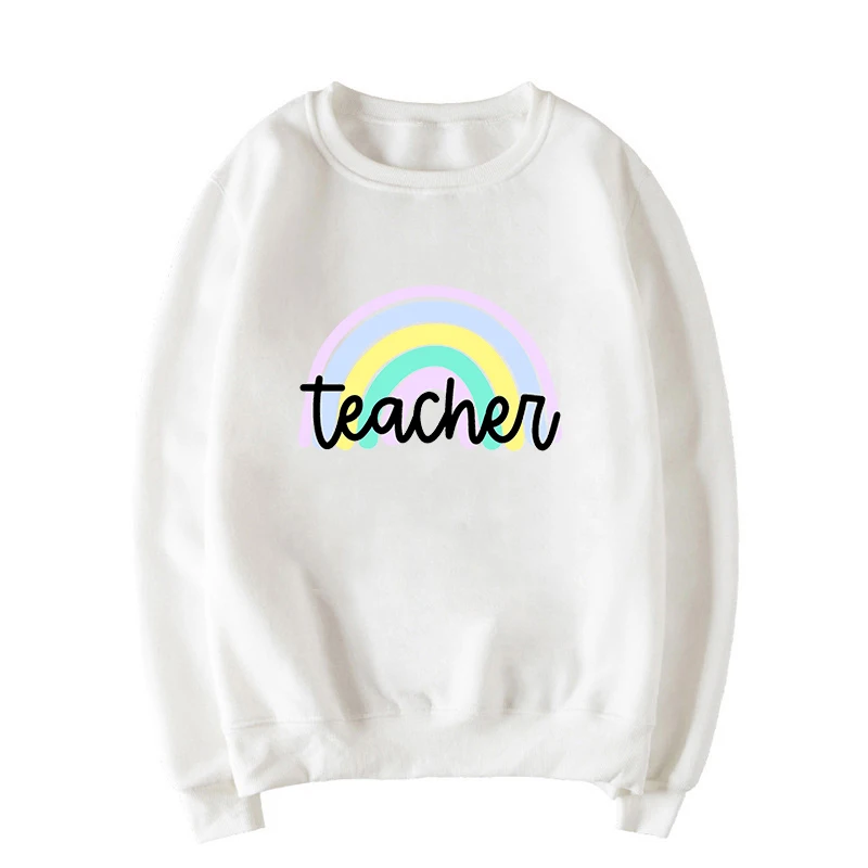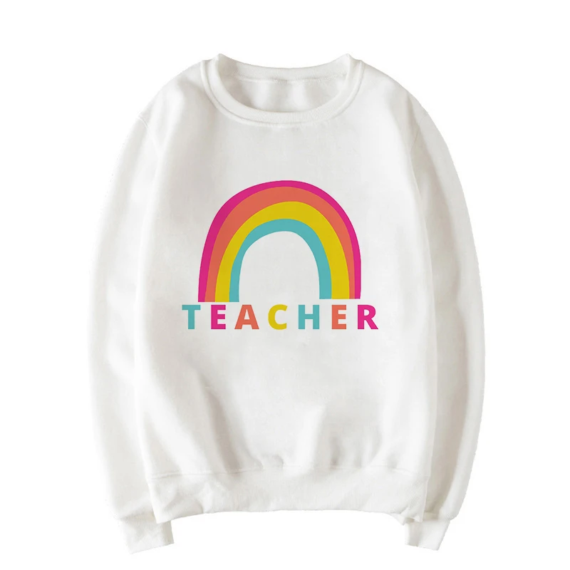 Свитшот Радужный в стиле ретро для учеников, милый пуловер с круглым вырезом для преподавания, рождественский подарок