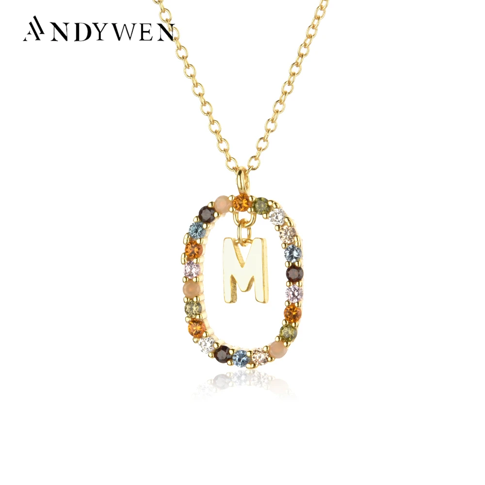 ANDYWEN 925 пробы серебряные золотые буквы A - Z Initial M S C K Ал...