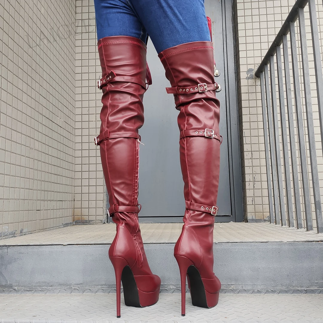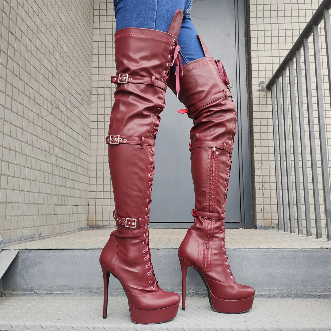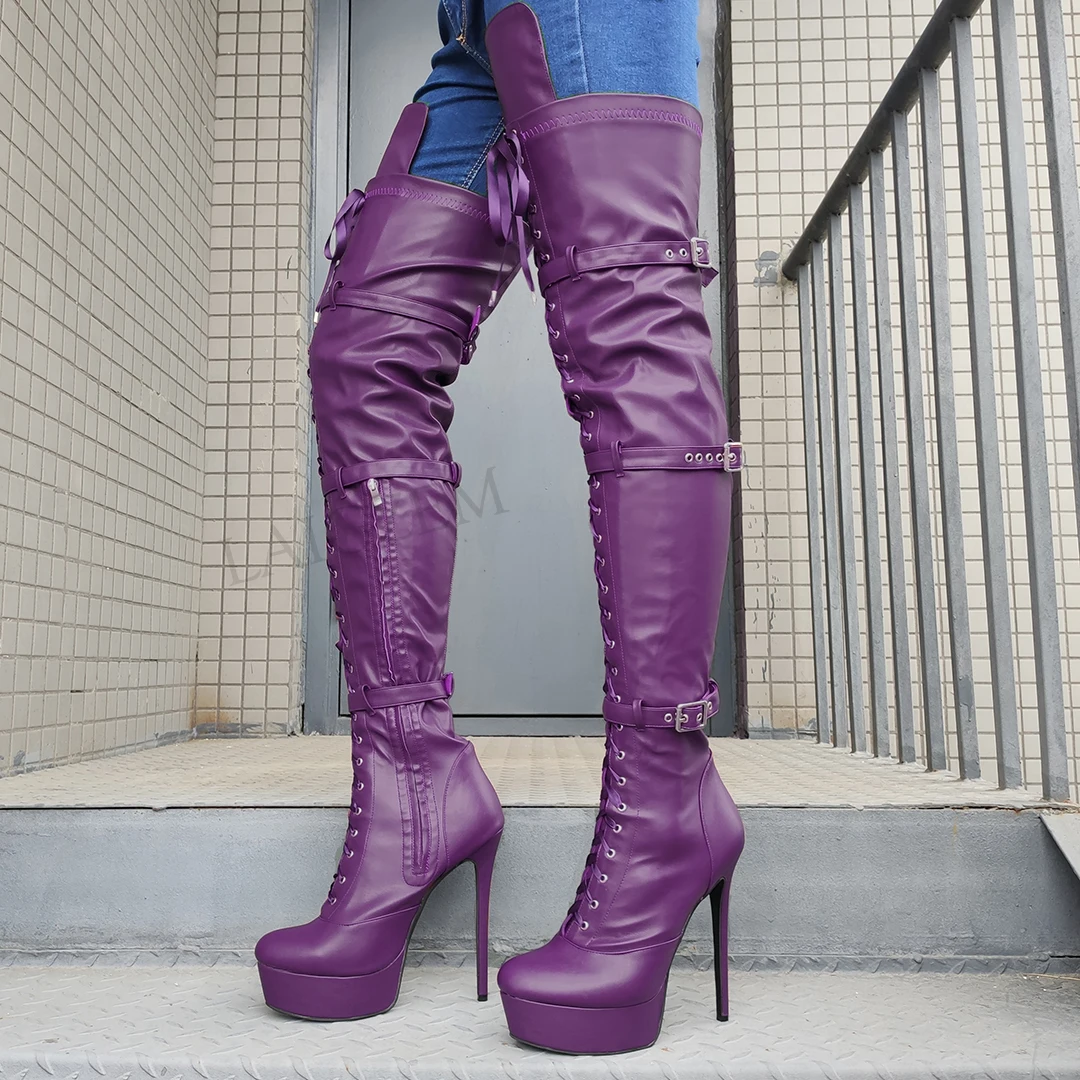 Сапоги женские до бедра, на платформе, на шпильке, с застежкой-молн...