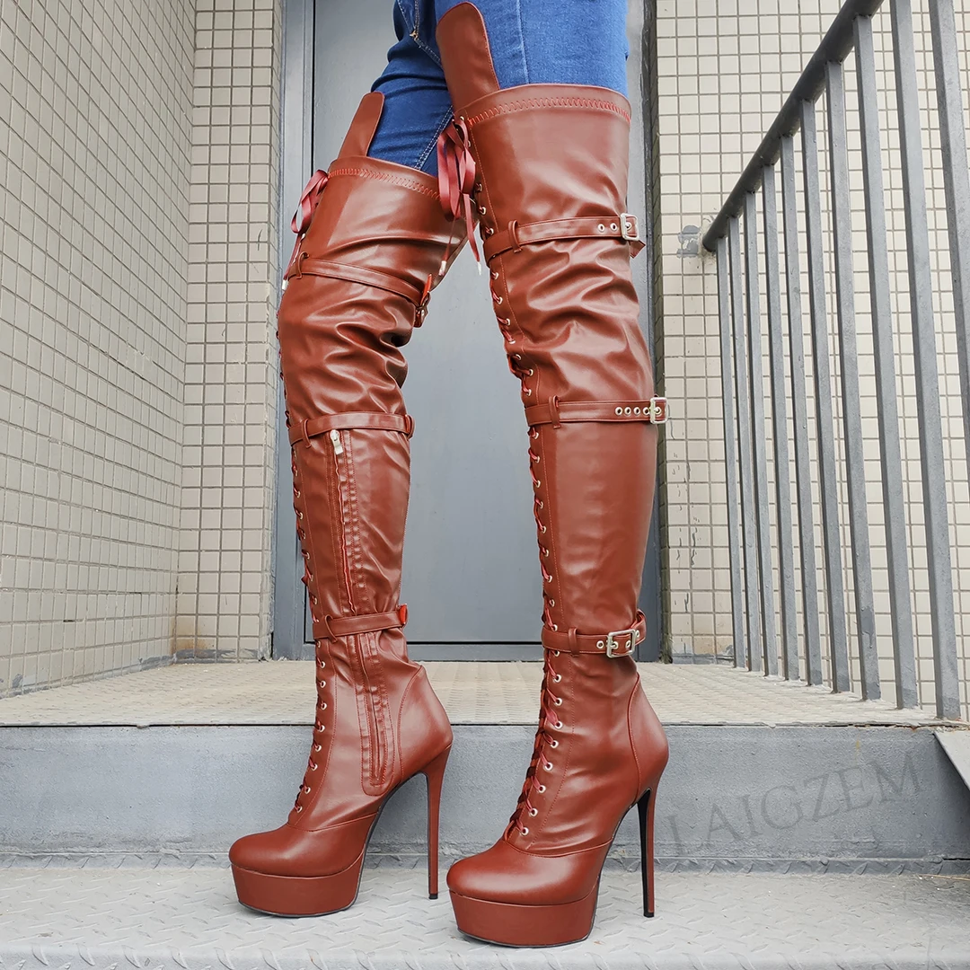 LAIGZEMженские сапоги на высоком каблуке и платформе; Сапоги до бед...