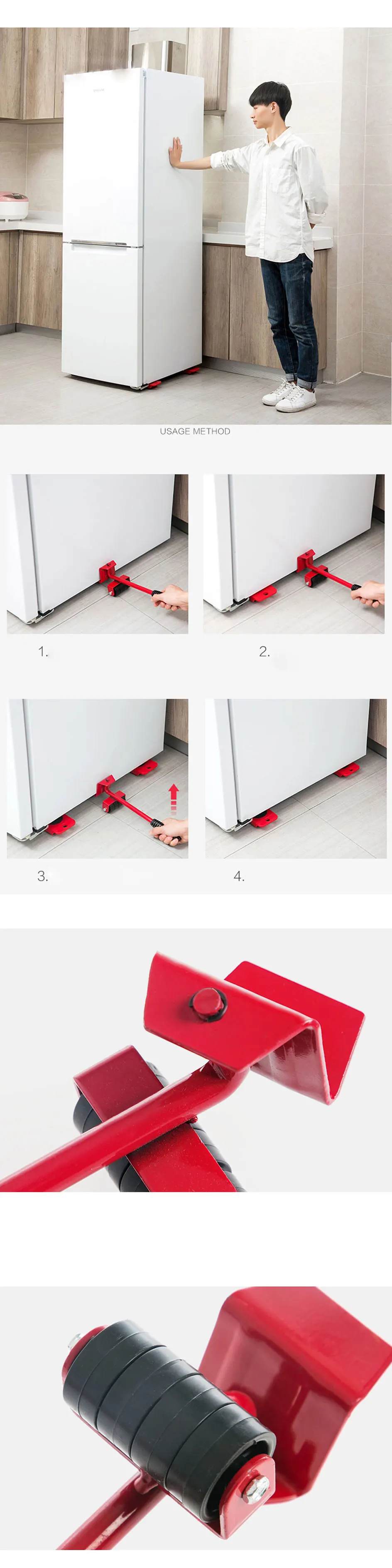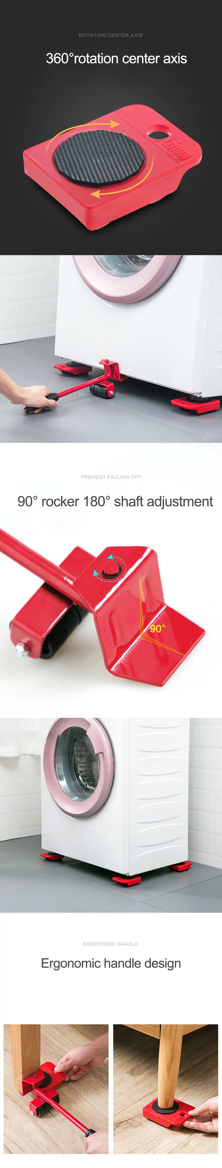 Тяжелая мебель, 5 шт.компл., подвижные колеса, роликовый двигатель, инструмент для транспортировки, подъемник, переключатель, холодильник, стиральная машина, диван