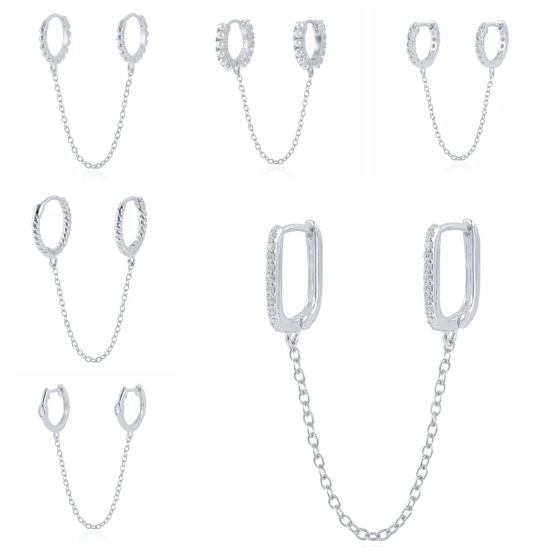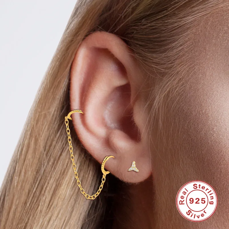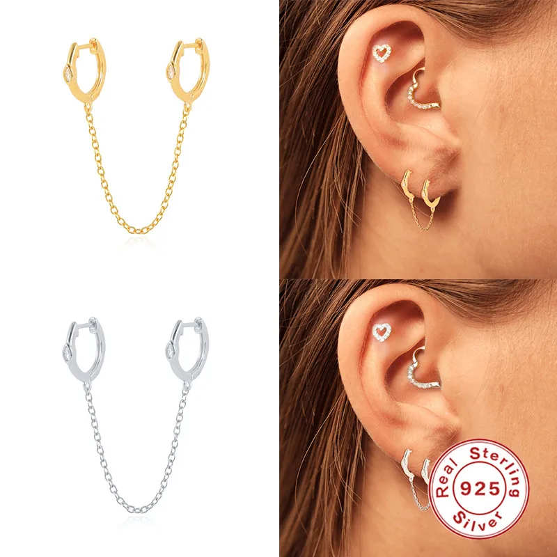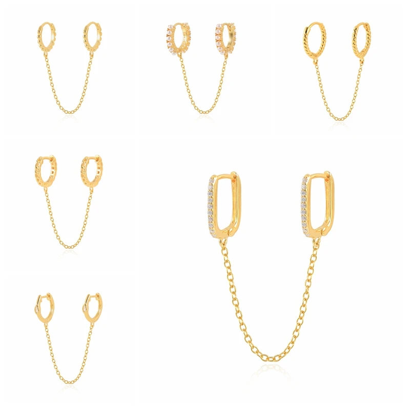 Двойная Цепочка инкрустированная клипса для ушей в европейском и ам...