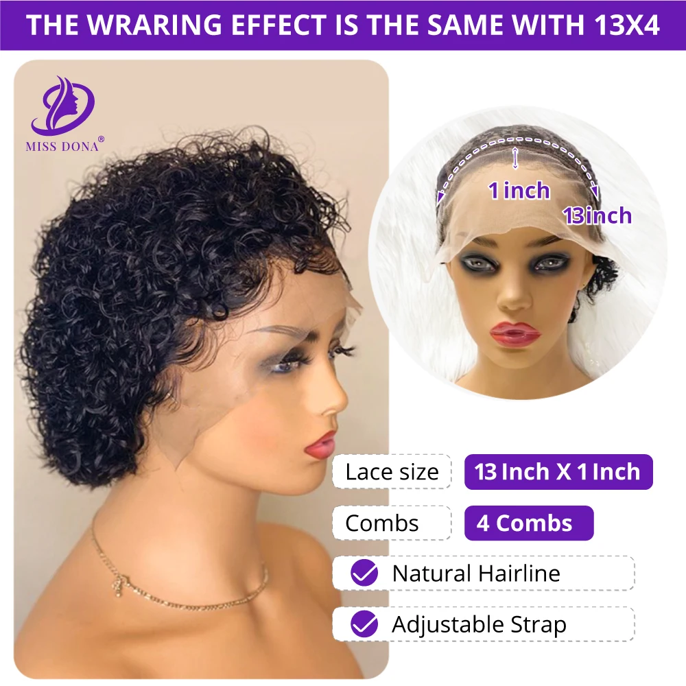 Кудрявые короткие парики Miss Dona 13x1, парики из натуральных перуанских волос для чернокожих женщин, высокая плотность, 180