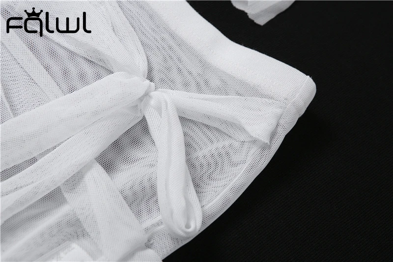FQLWL осенне-зимние сетчатые Лоскутные черные брюки Сексуальные обл...