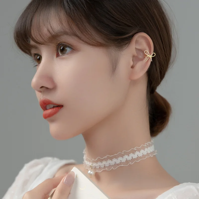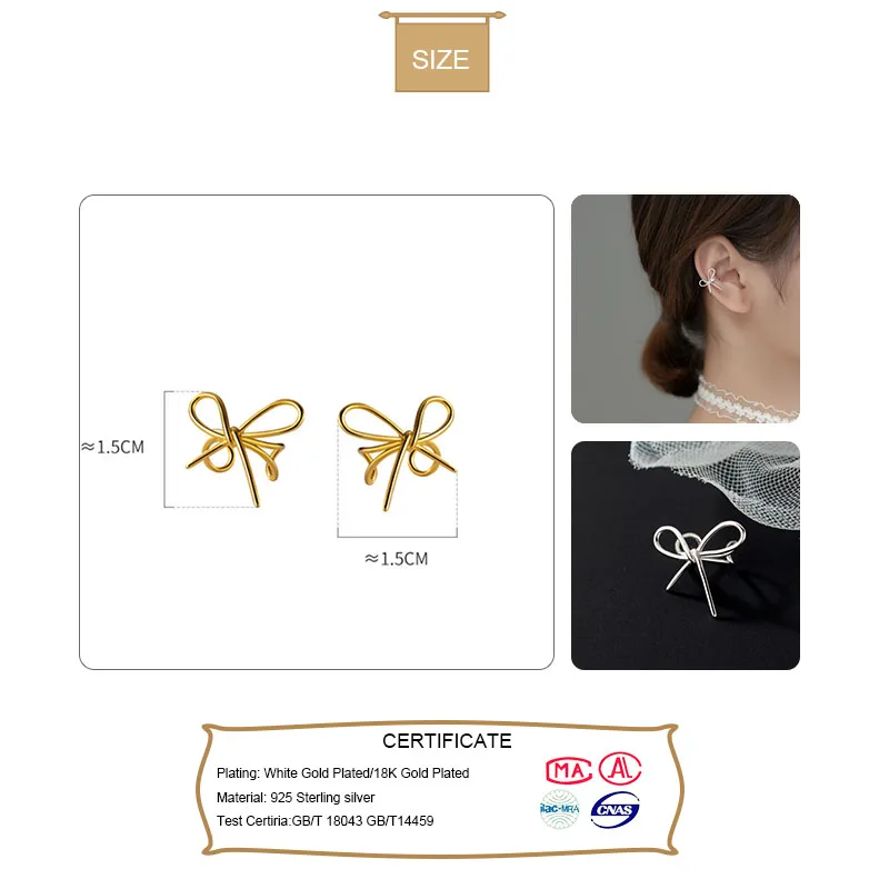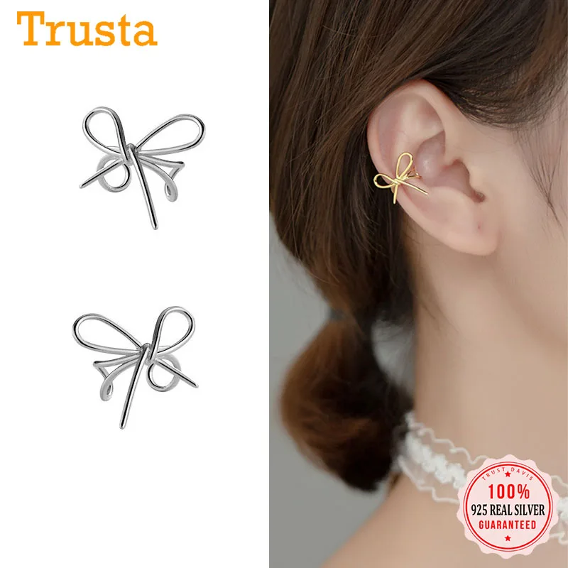 Trustdavis модные 925 стерлингового серебра бантом Кафф серьги-клипсы для женщин и девушек, без серьги в стиле пирсинга ювелирные изделия DB1186
