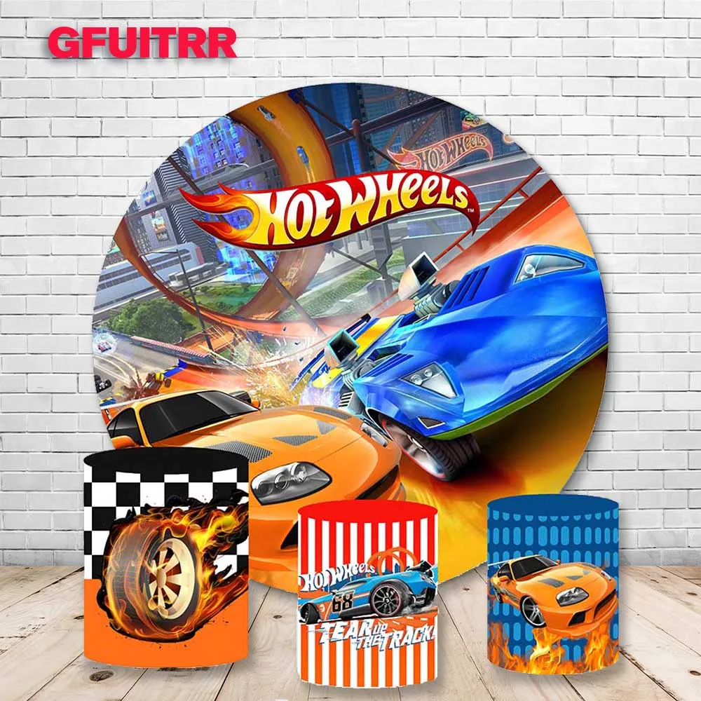 Виниловый фон для фотосъемки GFUITRR с изображением круглых колес для мальчиков на день рождения, гоночный автомобиль, голубой круг, реквизит для фотобудки