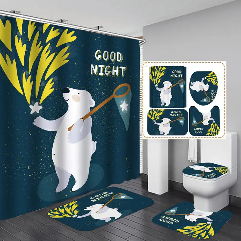 Шторка для душа из полиэстера с мультяшным рисунком белого медведя, нескользящий Коврик для ванны, крышка унитаза, коврики, домашний декор для ванной комнаты