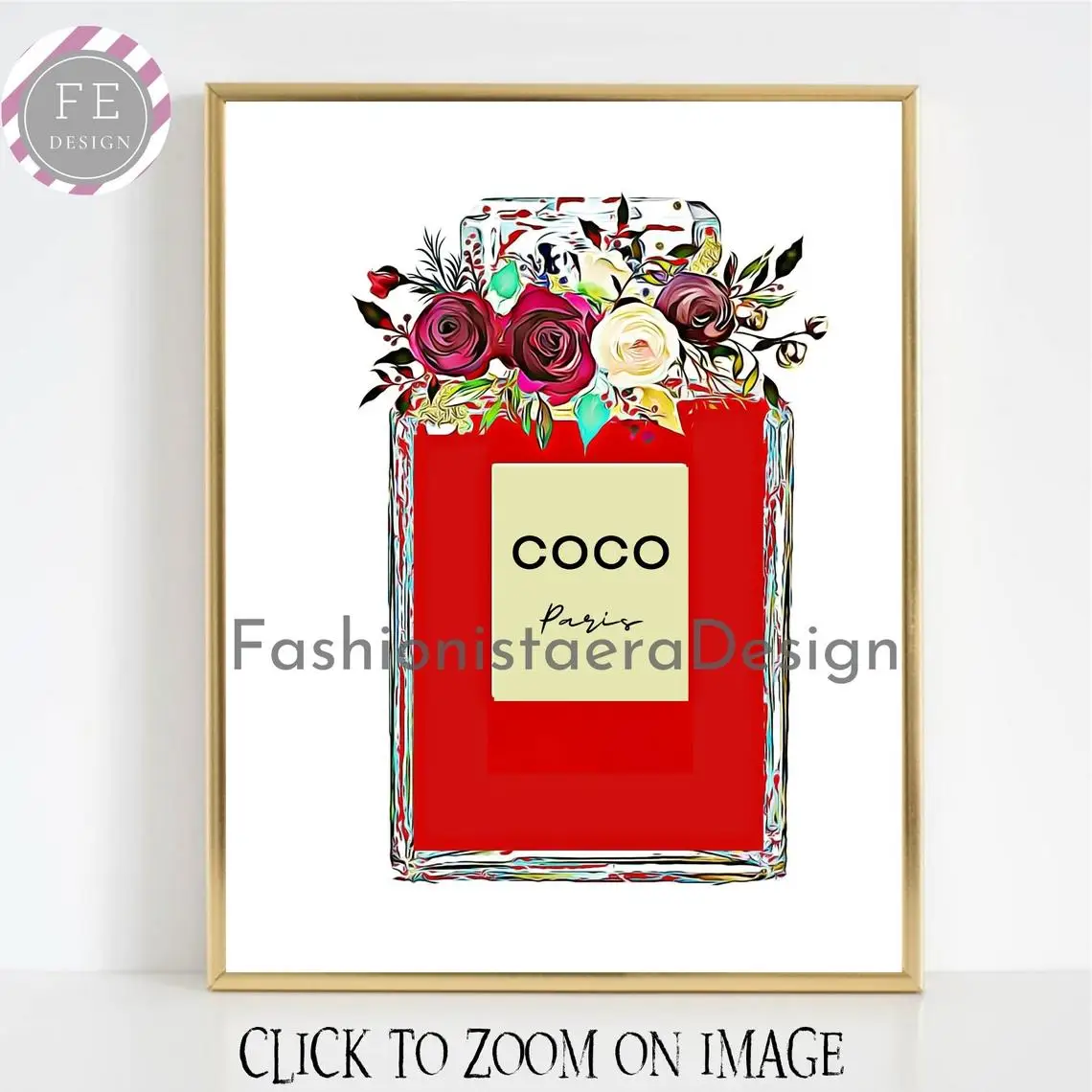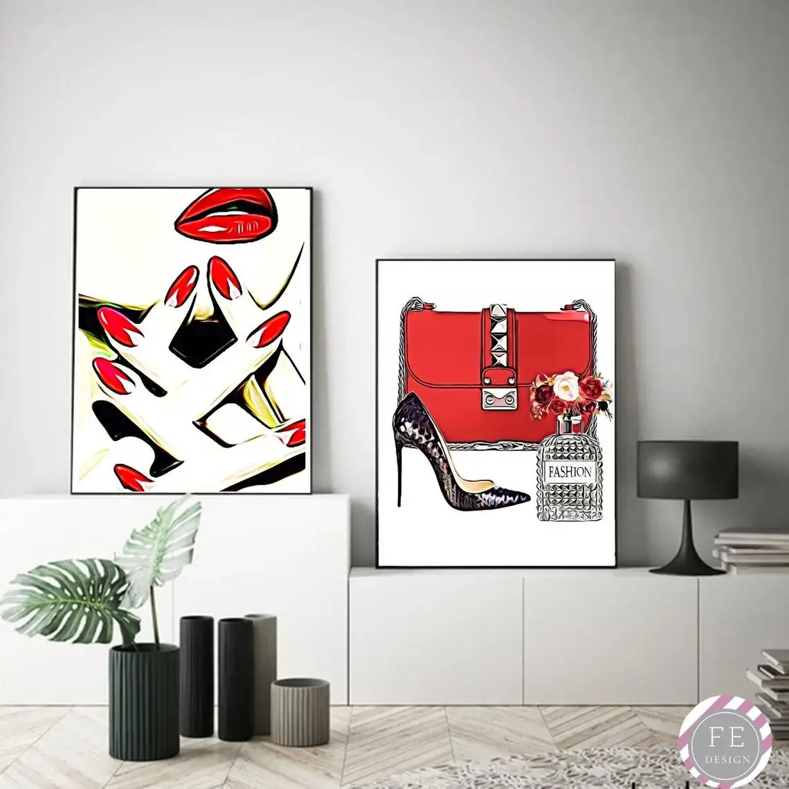 Модная Картина на холсте с флаконом духов, красная сумочка на высок...