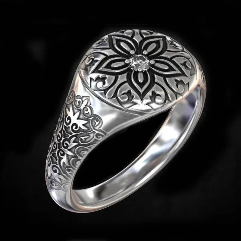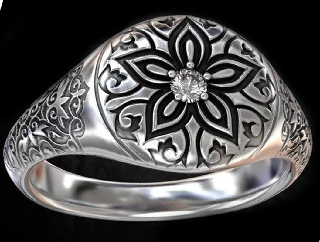 Punkboy в стиле ретро, с цветочным узором, из черненого инкрустированные стразы кольцо, Популярные изысканные ювелирные изделия для мужчин кольцо