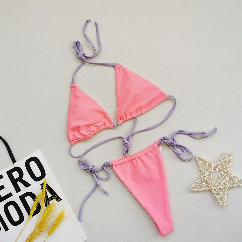 MYTENG пикантные Лоскутные бразильские микро бикини комплект летние треугольные Купальники пуш-ап Женская пляжная одежда купальник на завязках