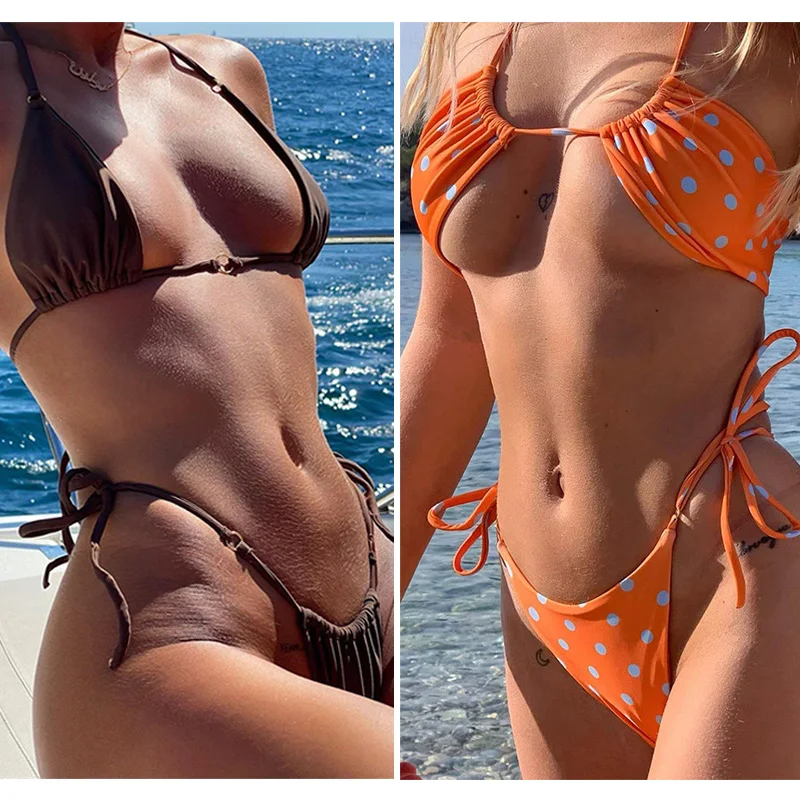 Привлекательное мини-бикини со стрингами, купальник с оборками, микро Блестящий бандажный купальник, женский купальник с пуш-ап, 2 предмета, купальный костюм, летняя пляжная одежда, бикини