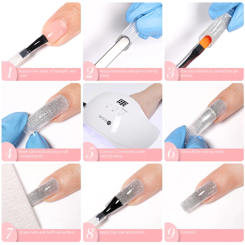 Спецификация:Количество: 1 НаборЕмкость: прибл. 15 млКомплектация:1 Набор 15 мл Лак для ногтей быстрое строительство Кристалл замочить от гель лак для ногтейОсобенности:100% Новинка розничная продажа и высокое качествоПодходит для нанесения на УФ-гелевые ногти, акриловые ногти, натуральные ногти и т. Д.Укрепляйте ногти с помощью прочного блестящего покрытияИдеально подходит как для профессионального, так и для личного использованияИнструкции по использованию:1)1. Слегка подпиливайте поверхность ногтя2. Нанесите очень тонкий слой основного покрытия и вылечите его под УФ/светодиодной лампой.3. Выберите подходящую форму и размер накладных ногтей.4. Нанесите кристаллический строительный гель на форму для ногтей, используйте ручку для дизайна ногтей с раствором скольжения, чтобы сделать гель гладким.5. Приклейте его к реальному ногтю и убедитесь, что он полностью увеличивается, и вылечите его под УФ/светодиодной лампой.6. Удалите накладные Кончики ногтей, тримминг форму и полируйте ногти.7. Нанесите гель верхнее покрытие и вылечите его под УФ/светодиодной лампой.8. Дизайн ногтей с вашими удовлетворенными узорами.2)1. Слегка подпиливайте поверхность ногтя2. Нанесите очень тонкий слой основного покрытия и вылечите его под УФ/светодиодной лампой.3. Нанесите форму ногтя на ноготь и Нанесите слой кристаллического строительного геля, вылечите его под УФ/светодиодной лампой.4. Нанесите второй слой строительного гель-лака и вылечите его под УФ/светодиодной лампой.5. Тримминг форм ногтей.6. Нанесите верхнее покрытие и вылечите его под УФ/светодиодной лампой.7. Дизайн ногтей с вашими удовлетворенными узорами.Как избежать выпадения ногтей:1. После быстрого нанесения геля на накладной кончик ногтя, используйте кисть, чтобы подобрать немного жидкого раствора скольжения, затем равномерно нанесите строительный гель на накладной кончик ногтя.2. Когда накладные ногти приклеиваются к вашим реальным ногтям, вам лучше убедиться, что накладные ногти могут быть полностью прикреплены к вашим ногтям, так что наращивание ногтей не отвалится от края ногтя.Обратите внимание:Пожалуйста, избегайте контакта с кожей. В случае аварии или если вы чувствуете себя нездоровым, немедленно обратитесь за медицинской консультацией. (покажите этикетку, когда это возможно)