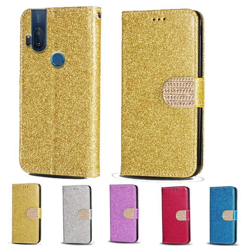 Роскошный блестящий кожаный чехол-книжка с бриллиантами для телефона Motorola Moto One, чехол с функцией подставки и отделением для карт