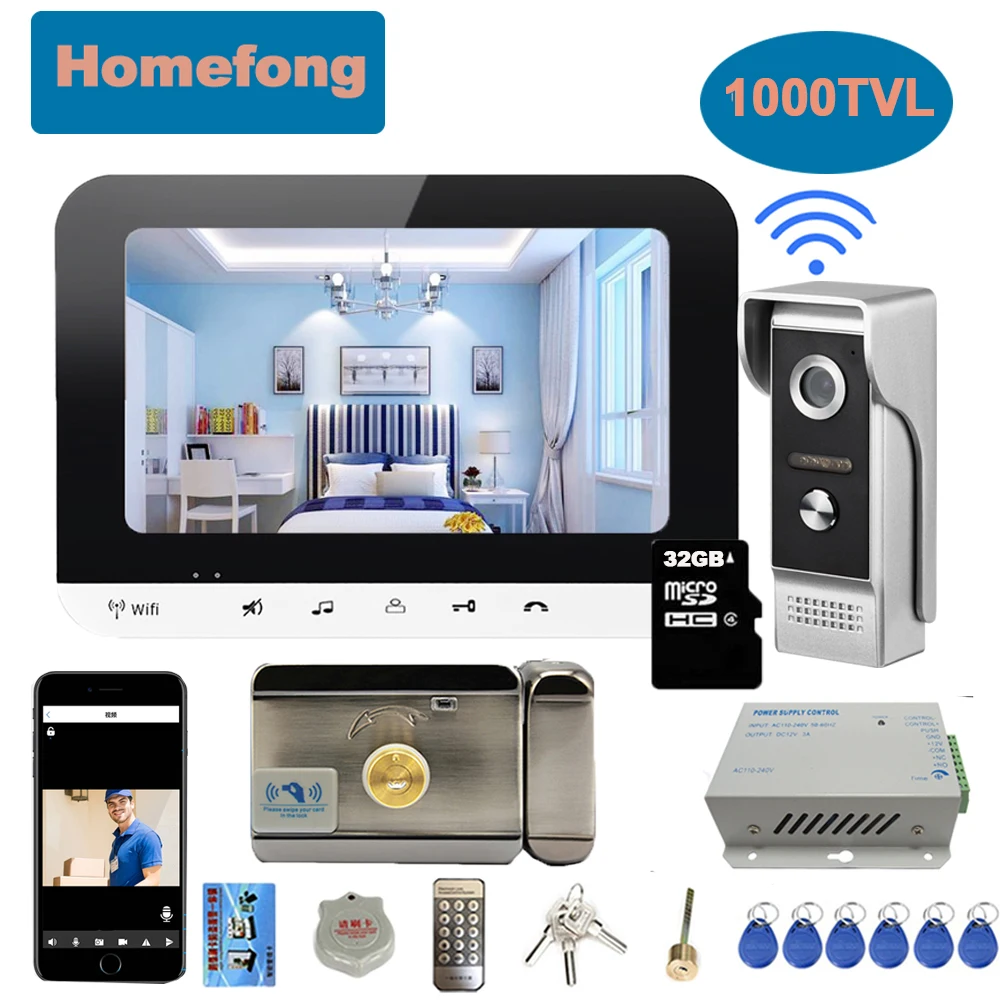 Беспроводной видеодомофон Homefong с Wi-Fi, дверной звонок с камерой и электронным замком, пульт дистанционного управления