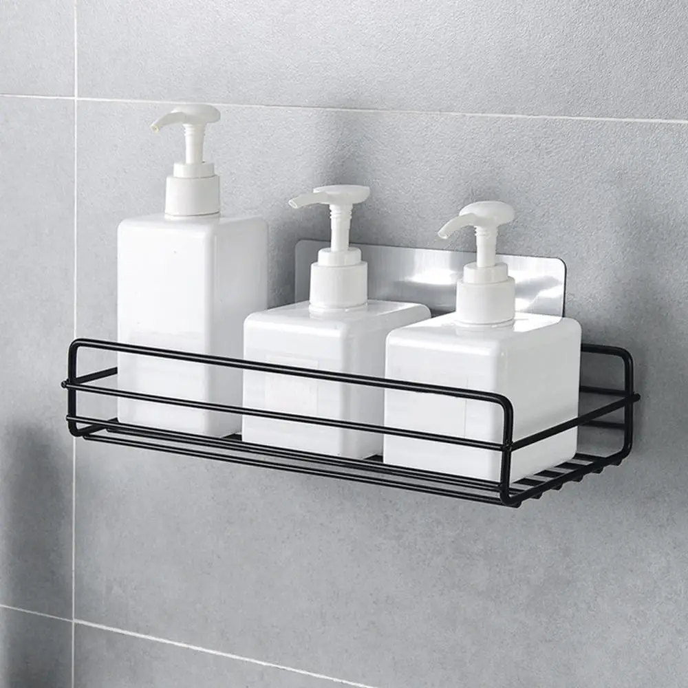 Просто Наклейте прозрачный клей на стену и Повесьте полку для ванной на крючки, без сверления, вам не придется повредить стену и легко удалить их без следовОтметок.Материал: железоРазмер: около 27.5x11x5.5cm
