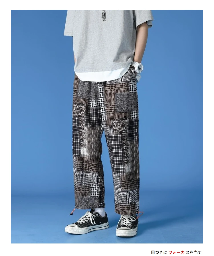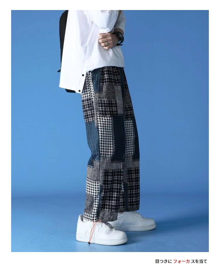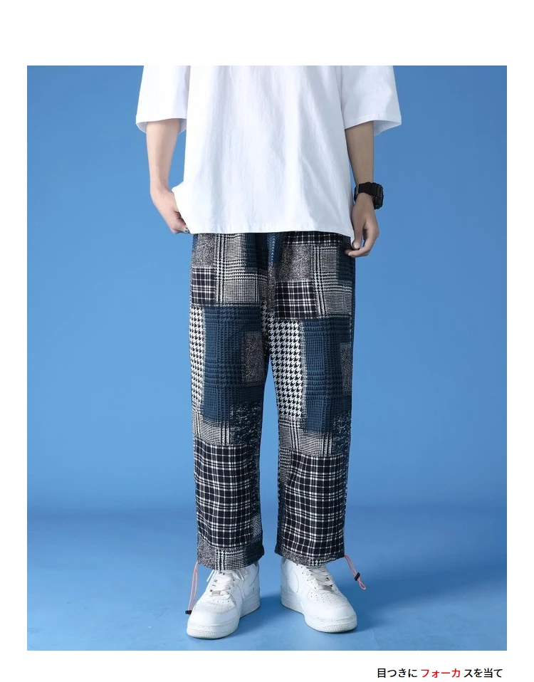Мужские брюки в клетку, повседневные свободные универсальные брюки ...