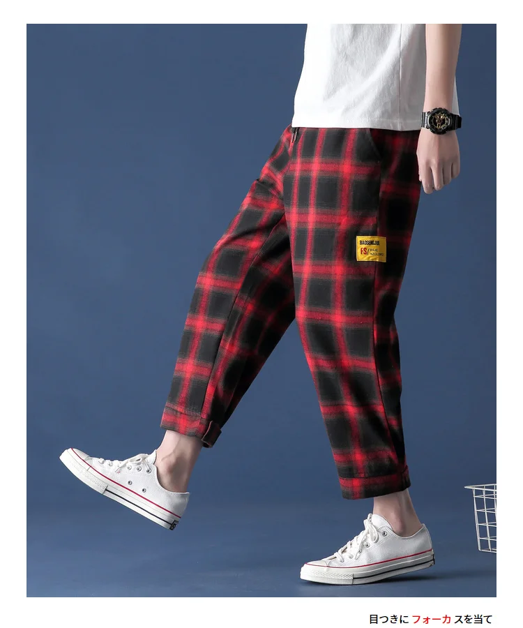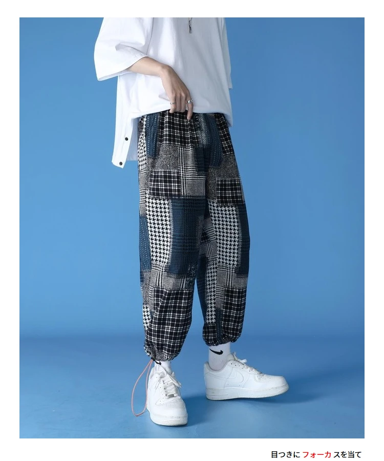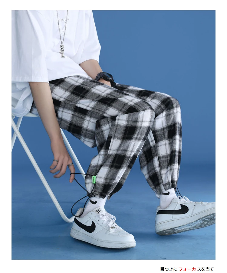 Штаны для бега мужские в клетку, летние, комфортные брюки, Японская уличная одежда, S-5XL