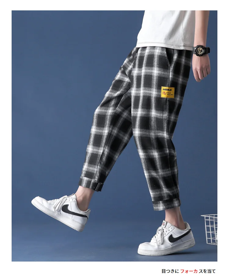 Мужские штаны в клетку для бега, черные хлопковые повседневные свободные штаны в уличном стиле, японские модные спортивные штаны, лето комфортные брюки