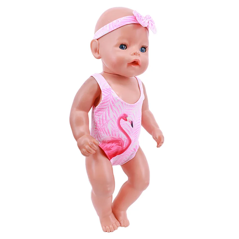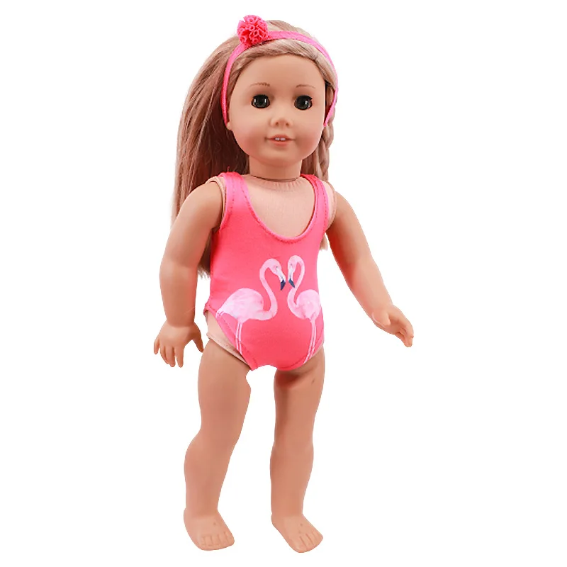 Кукольная одежда в виде фламинго для плавания, яркий жилет для 18-д...