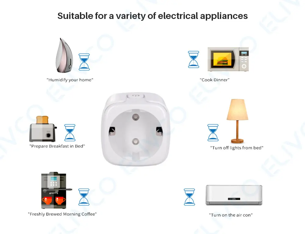 Используйте функцию таймера или функцию обратного отсчета для включения и выключения этого устройства, чтобы сделать жизнь проще и безопаснее для окружающей среды.
