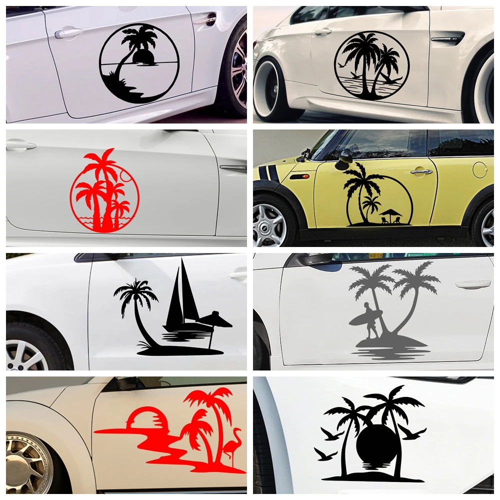 Модные пляжные кокосовые пальмы, автомобильные наклейки, декор окна, пальма, виниловые художественные узоры, наклейки на кузов автомобиля