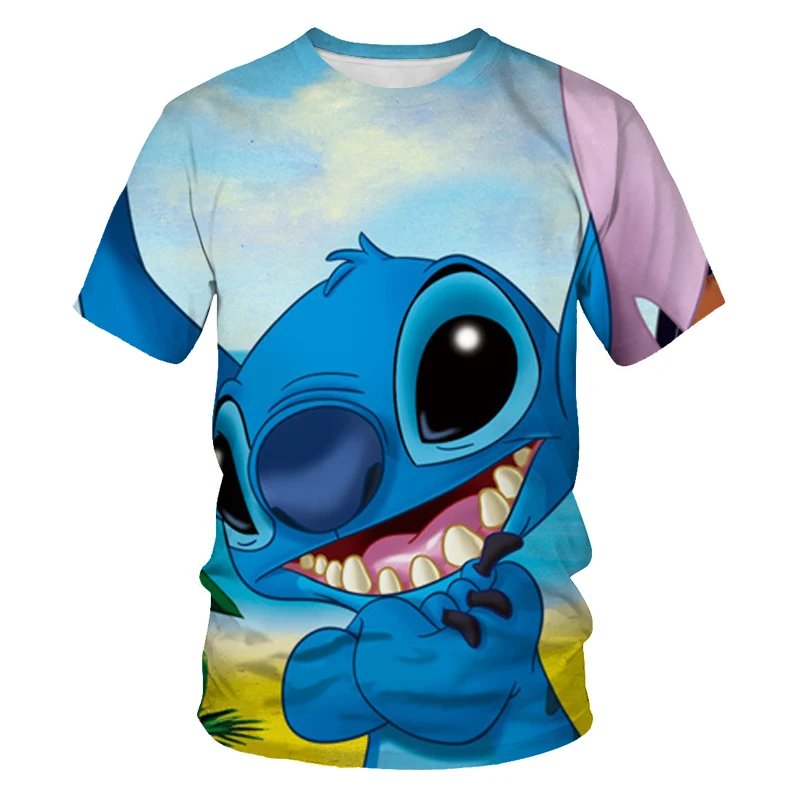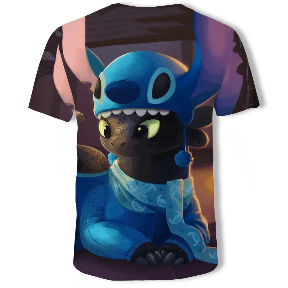 Летняя новая модная футболка с 3D-принтом, популярная мужская футболка, Милая футболка с мультяшным принтом ститча из аниме, одежда для подростков