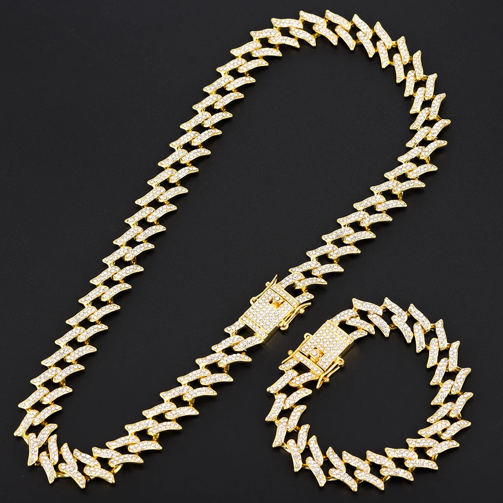 В стиле хип-хоп Bling, Полный Стразы мужские шипы золотой браслет зубец КУБИНСКИЙ звено цепи браслет подойдет в качестве подарка как для мужчин, так и для ювелирных изделий