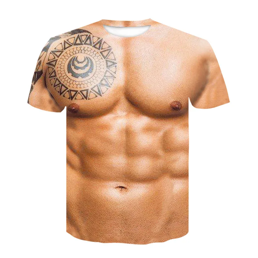 Летние мужские фальшивые мускулы футболки с 3D принтом татуировок с...