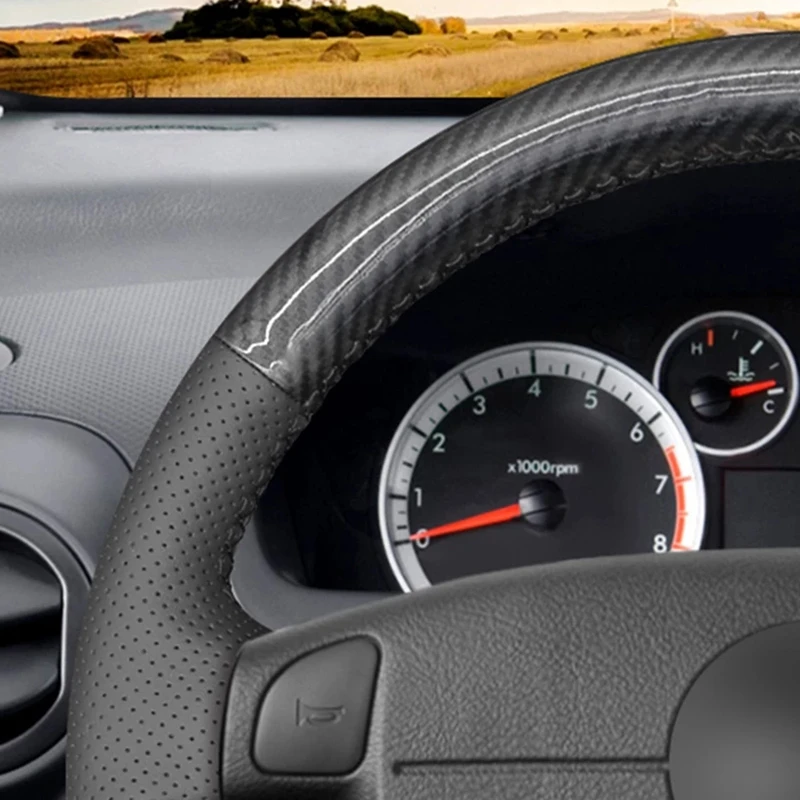 Чехол рулевого колеса автомобиля Черное ПУ углеродное волокно для A...