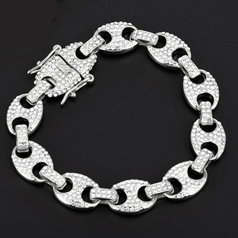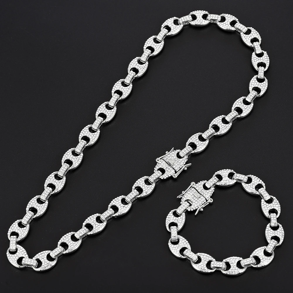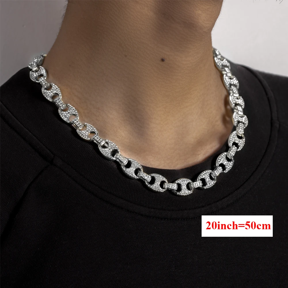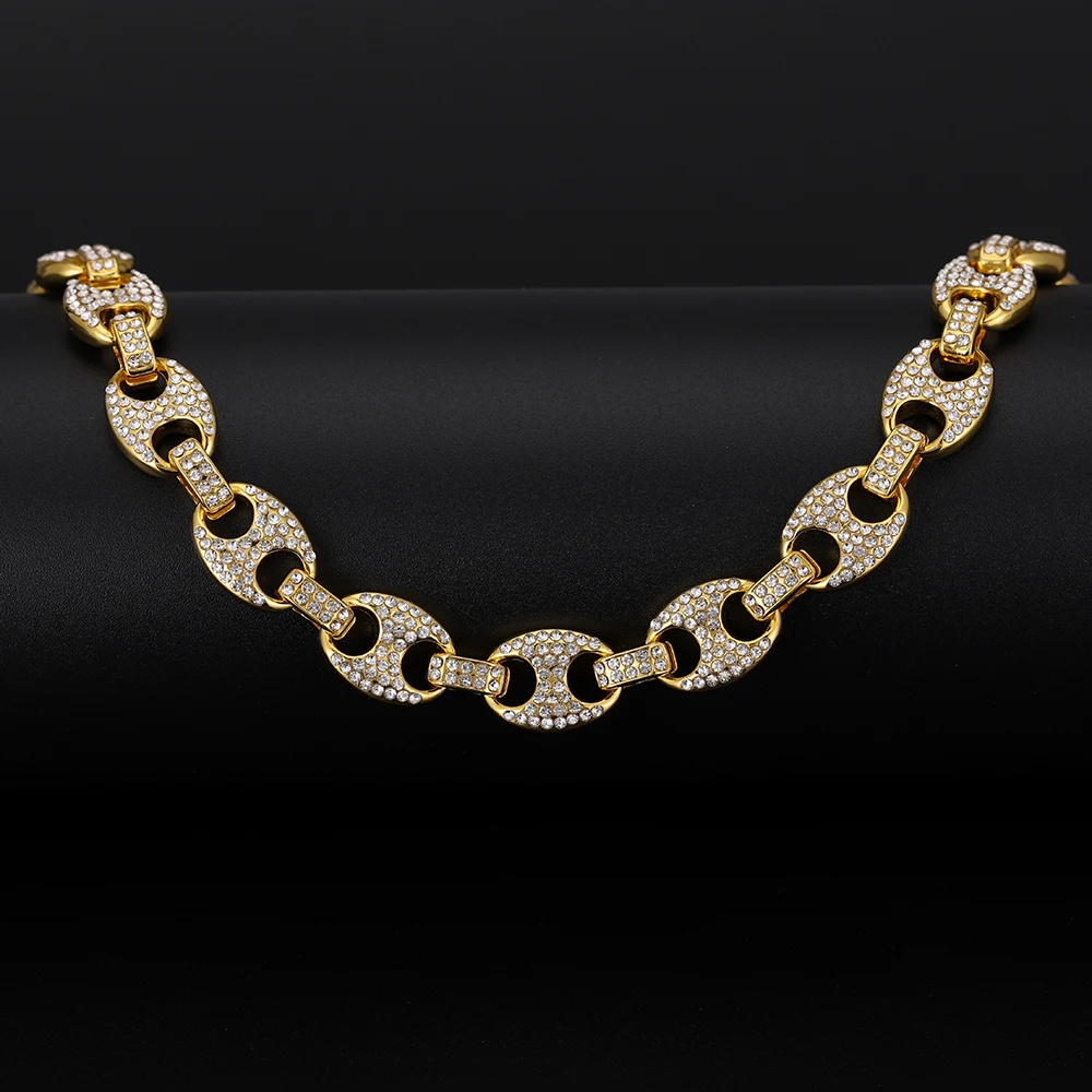 Цепочка в стиле хип-хоп, ожерелье с декором кофейные зерна, свинка, нос, браслеты в стиле панк, сверкающая цепь 13 мм с цирконием AAA